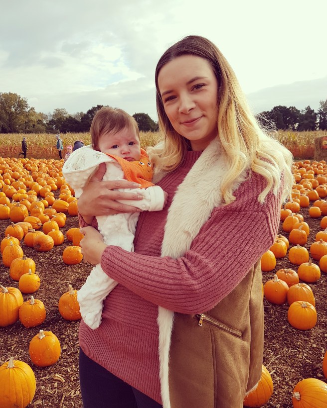 It would seem that since my eldest Great Nephew Alfie, has been able to walk we have always gone Pumpkin Picking. The first time I went with him, his Mummy Gemma and my niece in-law Kelly he loved. What more does a little one want than to wonder a huge field full of brightly coloured pumpkins of all different shapes and sizes. The following year we went back with my newest Great Nephew Jack. Only to realise we went on the day it was shut! Luckily Alfie was happy with a yummy lunch out and Jack was too little to know what he had missed. Skip forward yet another year and I had my own little pumpkin to take, an 11 week old Polly.