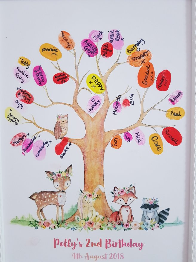 It was from the same lady who made her invites so matches perfectly and just says little details about her, weight, how many teeth she has at this age, shoe size, although she is now a 6. I just love little things like and its on her self in her room. Again found her on Instagram “When you wish upon a star”. Also on a keepsake note here is her birthday fingerprint tree that everyone did which is now hanging up in her playroom.