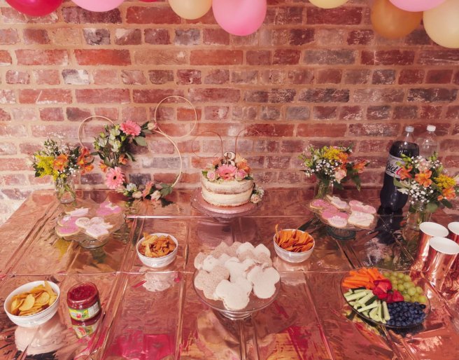 We hired a little hall, put on a big spread and hired soft play too which all the little ones loved. We also had a DIY photo booth style area.