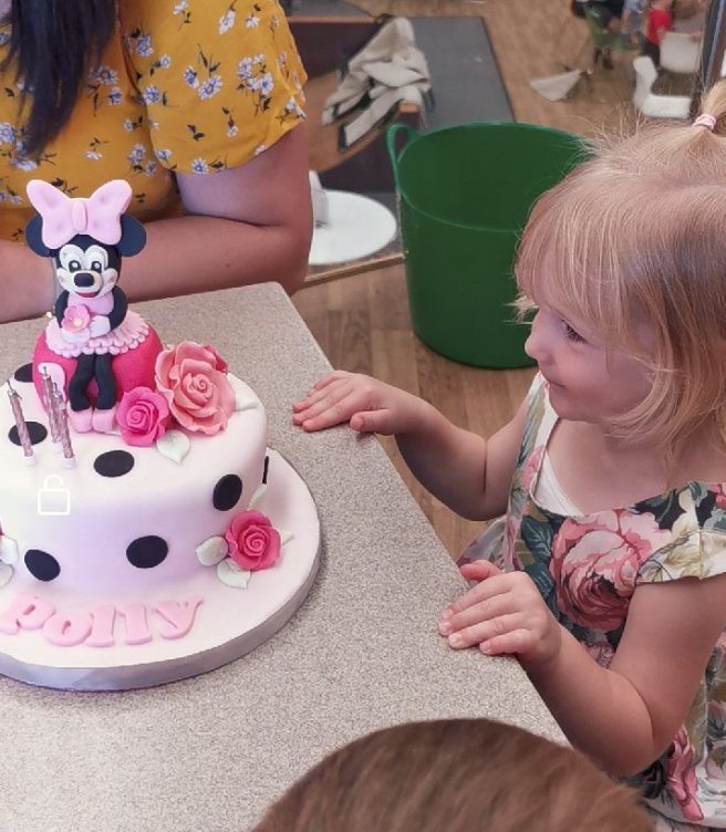 This years party wasn’t majorly themed because I didn’t decorate the venue as you weren’t aloud balloons etc. But because we went to Disneyland this year and Polly’s love of Disney etc I made her a Minnie Mouse cake which she loved. I knew I wouldn’t have many years of myself being able to decide on what cake she would have so I guess I started early =) Polly infact helped me bake her cake this year as she enjoys helping me in the kitchen.