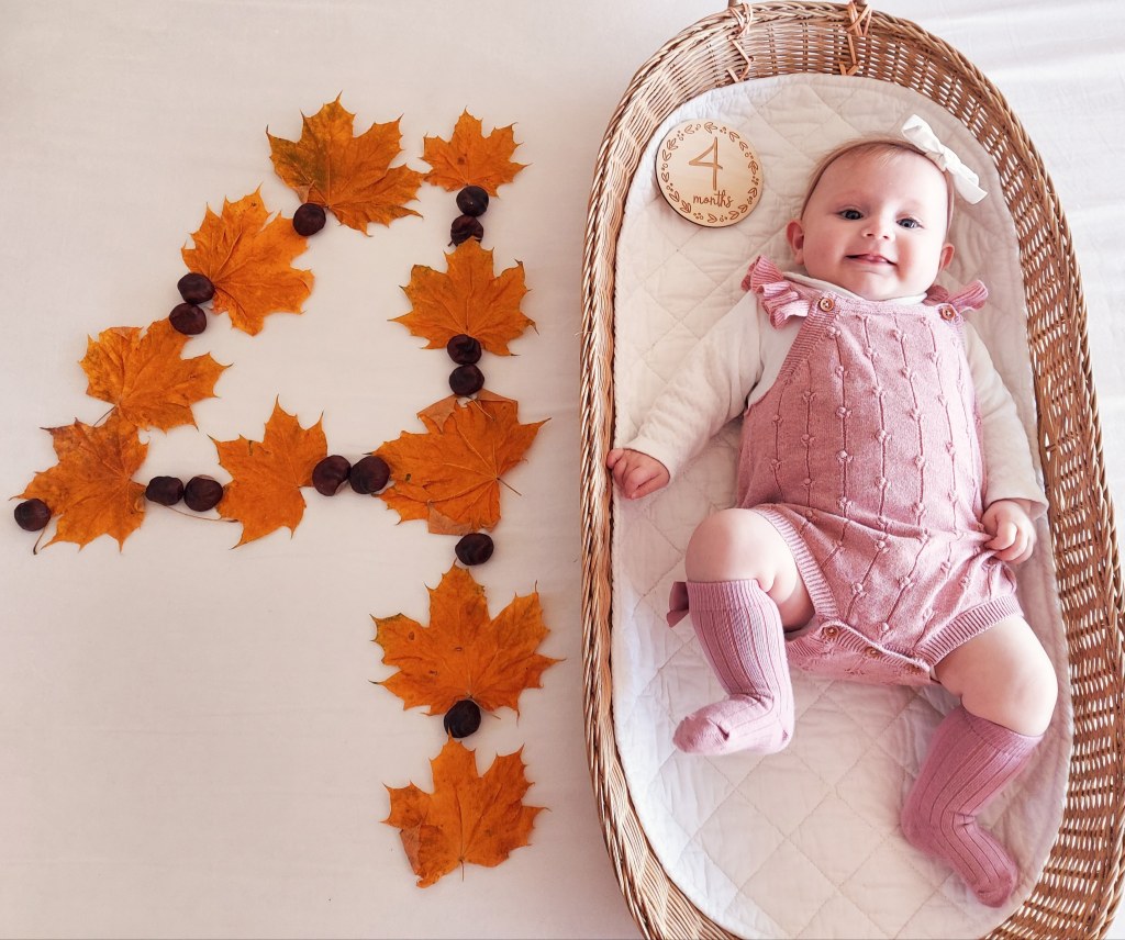 I love trying to get abit creative for her monthly pictures to try fit in with the seasons and all these leaves and conkers were found by Polly on one of our many walks.