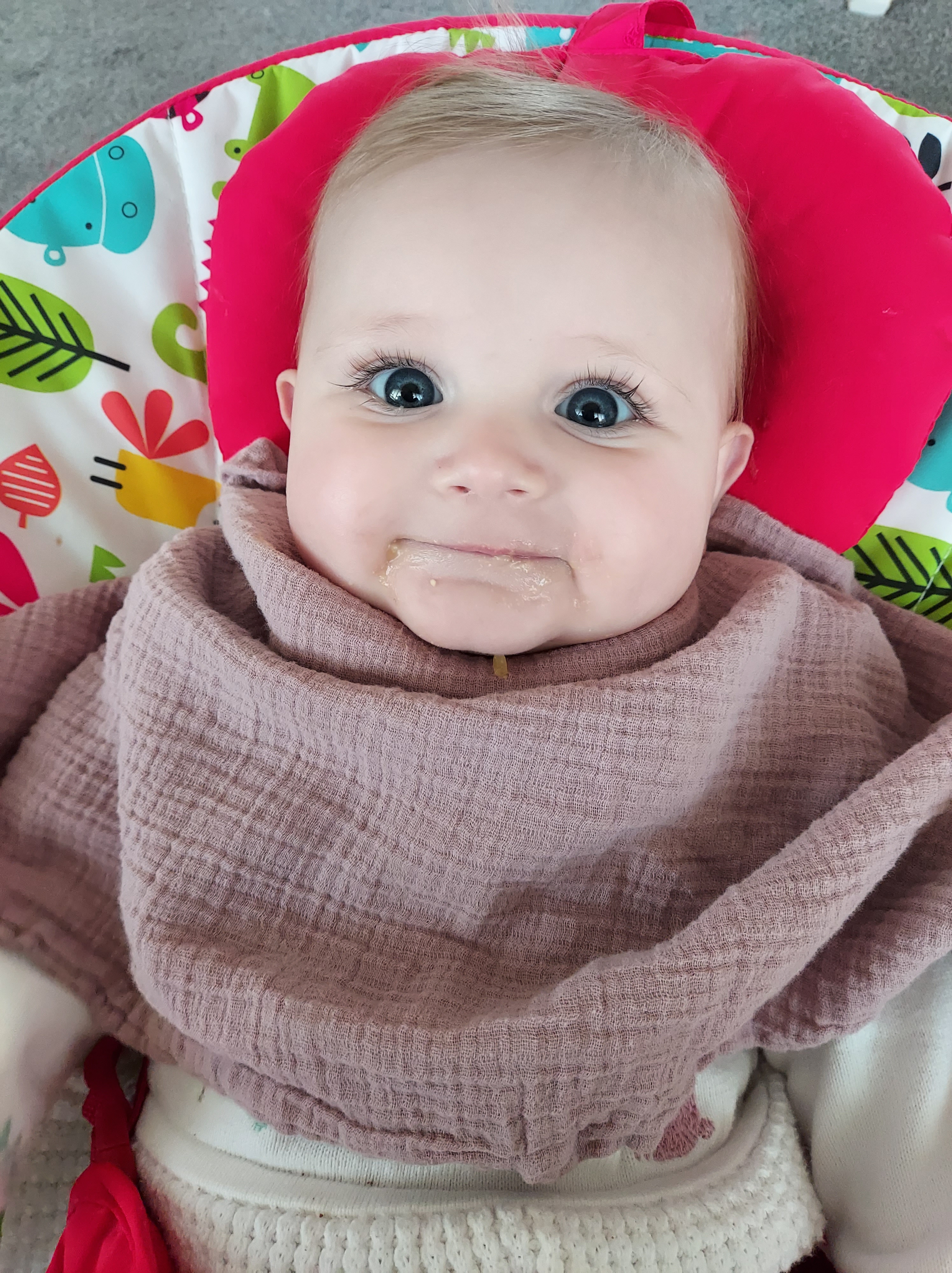 Milestones like these always make me realise how fast she is growing bless her. She is still loving food and we seem to be getting into a good routine of food and bottles. She roughly has 4 bottles of milk per day at 6oz. I don’t make more because she usually never finishes it….