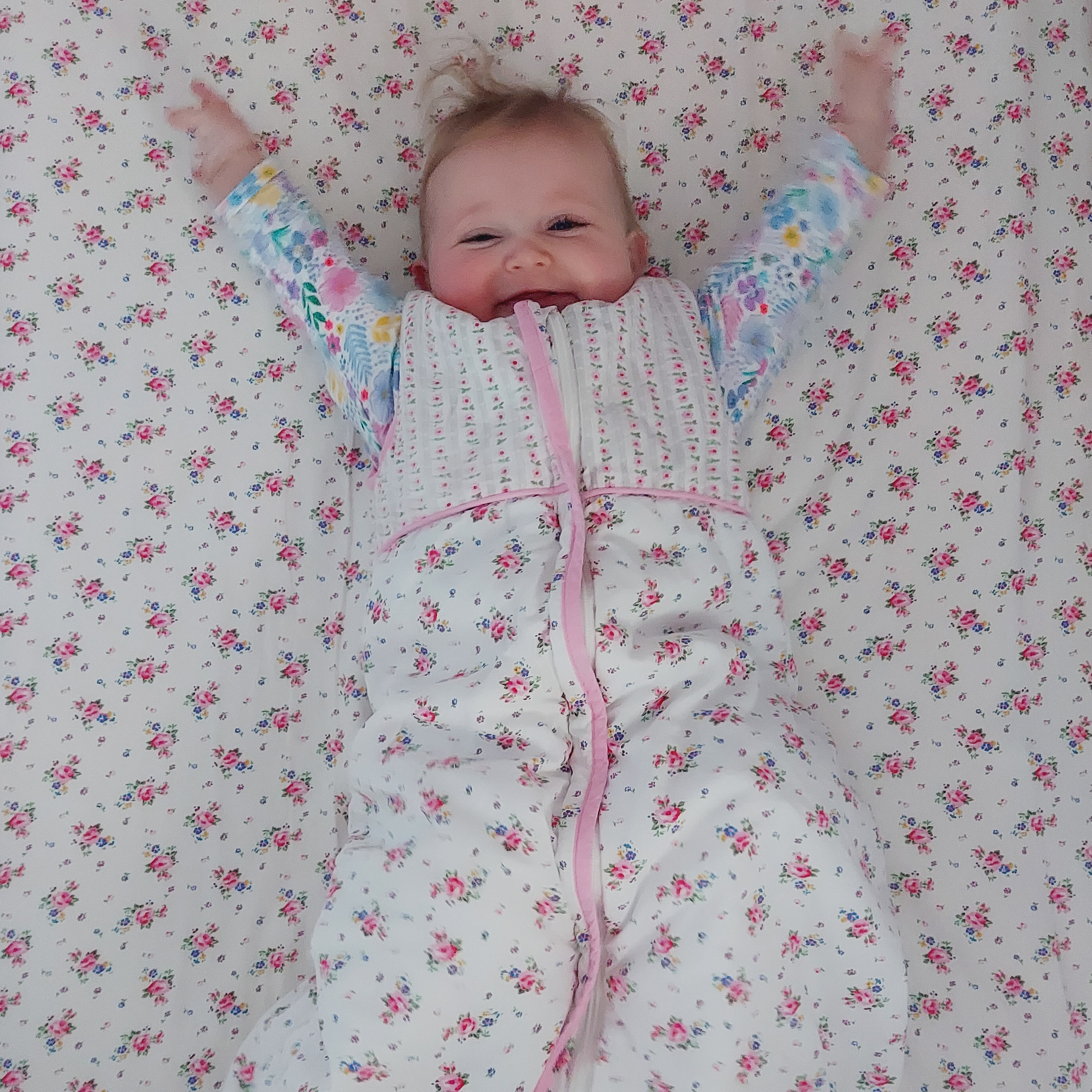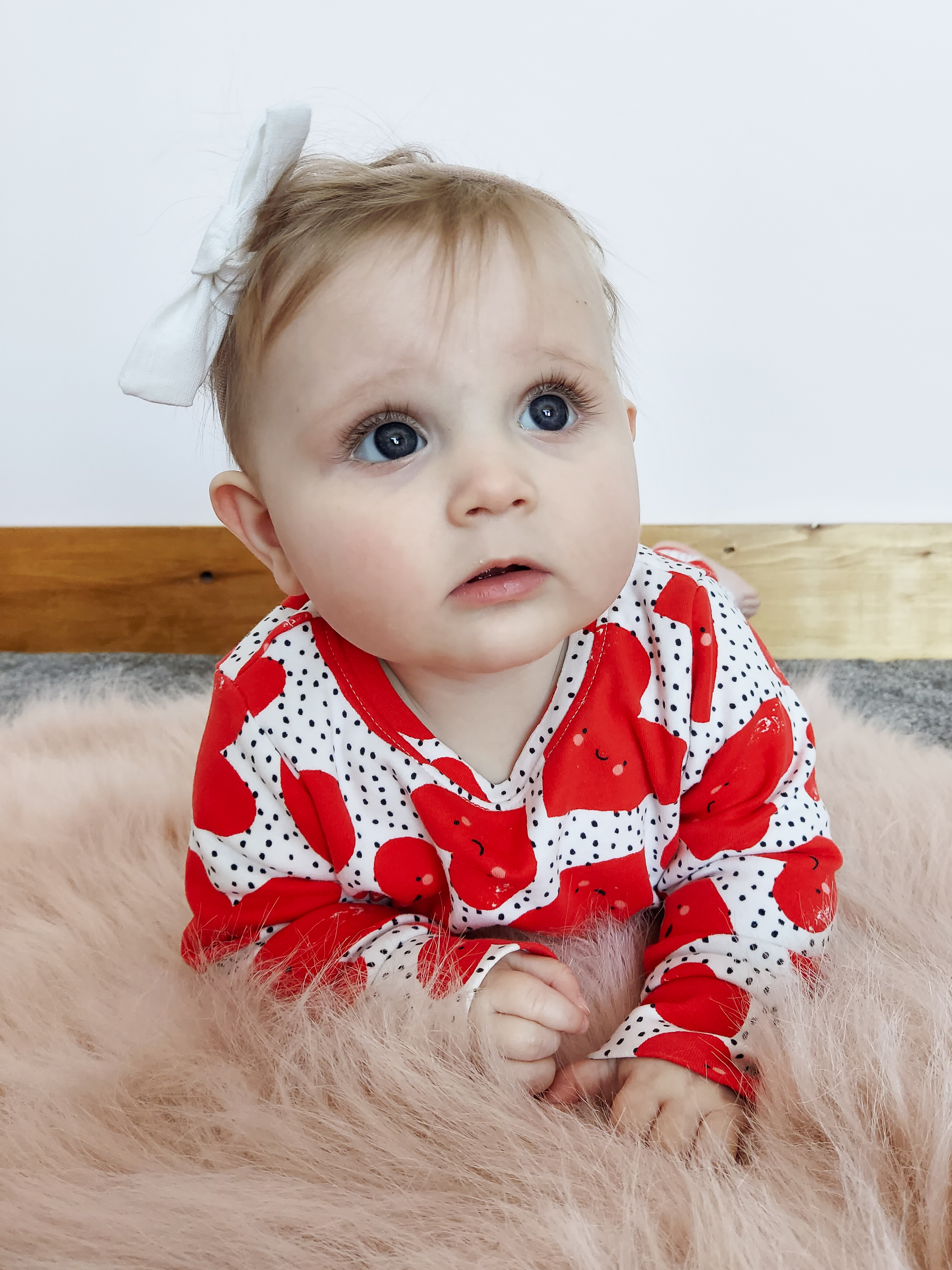 This past week Lola has suddenly started army crawling everywhere! She has always loved tummy time and being on her tummy but now she is off. Especially if Polly is sitting down on the floor colouring etc in she will shuffle and get to her so quick to grab a pen, nothing is safe. I used to be able to sit her on the floor and leave the room for a second to grab something but now I can’t as she is almost behind me!