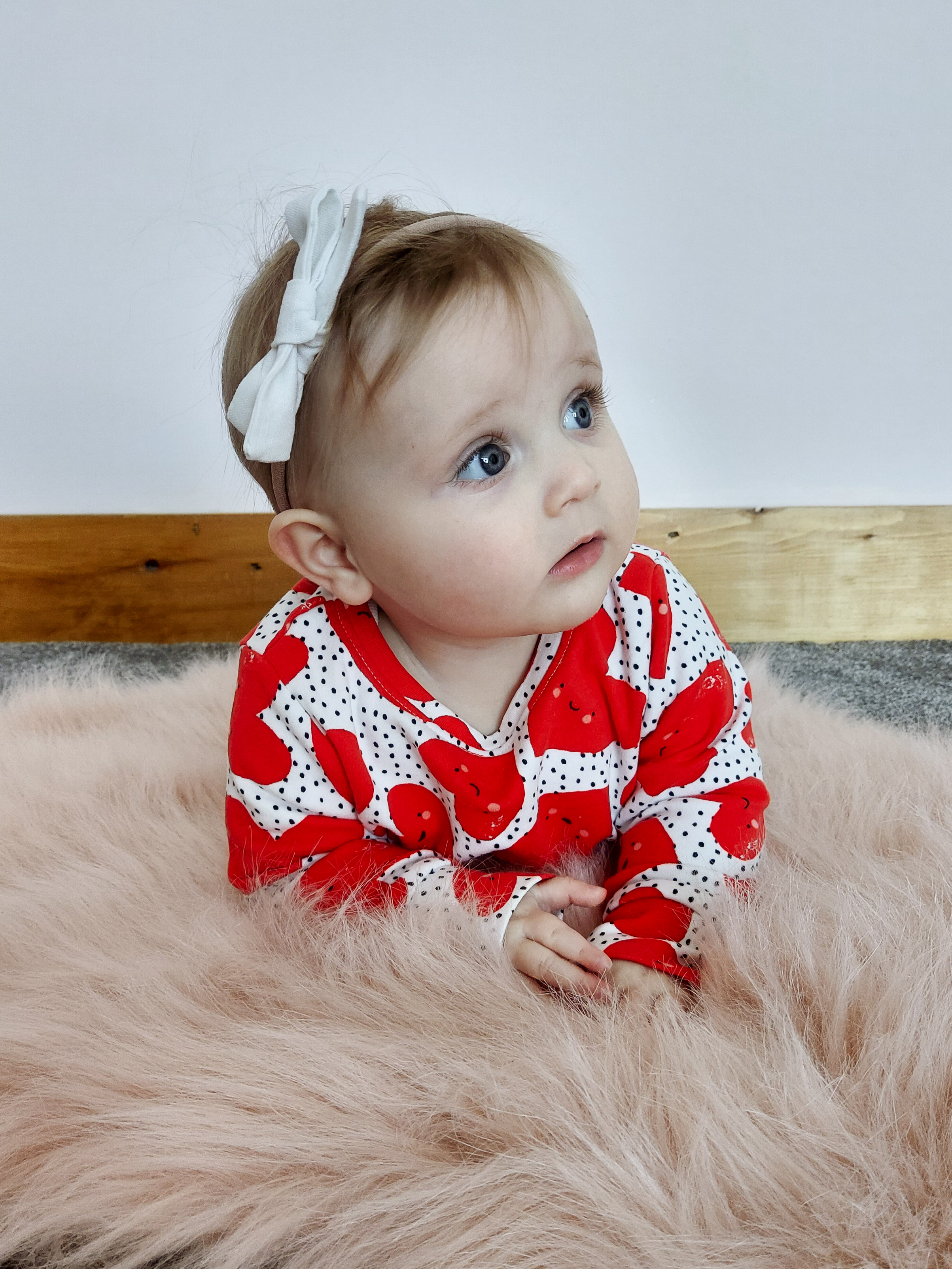 As for Lola, I trimmed her fringe for the first time this month. Her fringe was getting long and she had two whispy long bits either side of her hairline at the back so trimmed them. I remember Polly had something silly like 9 little trims before her first birthday as she had so much hair! She has also been pulling herself up on on things like the sofa and we have dusted off Polly’s old walker and she loves walking with that and wants to walk holding your hands which I just can’t believe as to me she is still my little baby. She has also got her 2nd bottom tooth coming through and has now started to say Dada but I’m happy she said Mama first 🙂