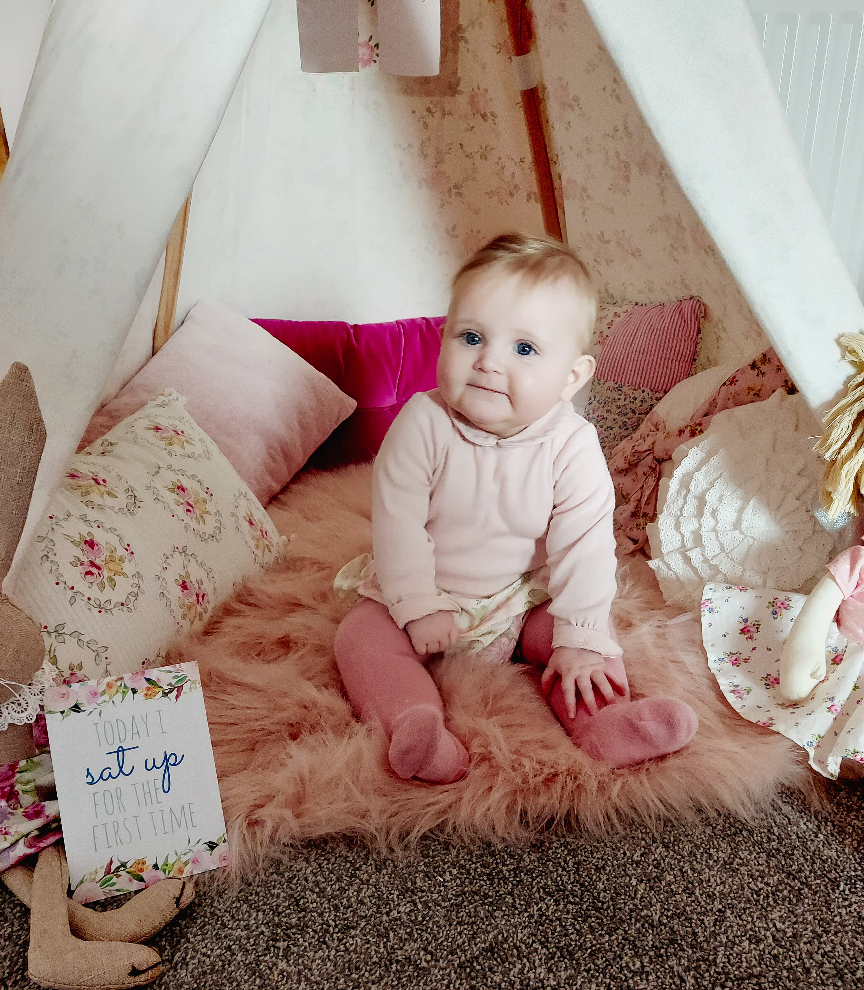 I can’t quite believe it’s February already because January can seem like a total drag especially in lockdown, but somehow these lockdowns make time go super fast. Lola has now officially learnt to sit on her own unaided. She has been sitting for a while between my legs and with cushions around her but then suddenly falling to one side etc but know she has finally cracked it and I feel safe her sitting on the fall knowing she isn’t going to fall and bang her head etc.
