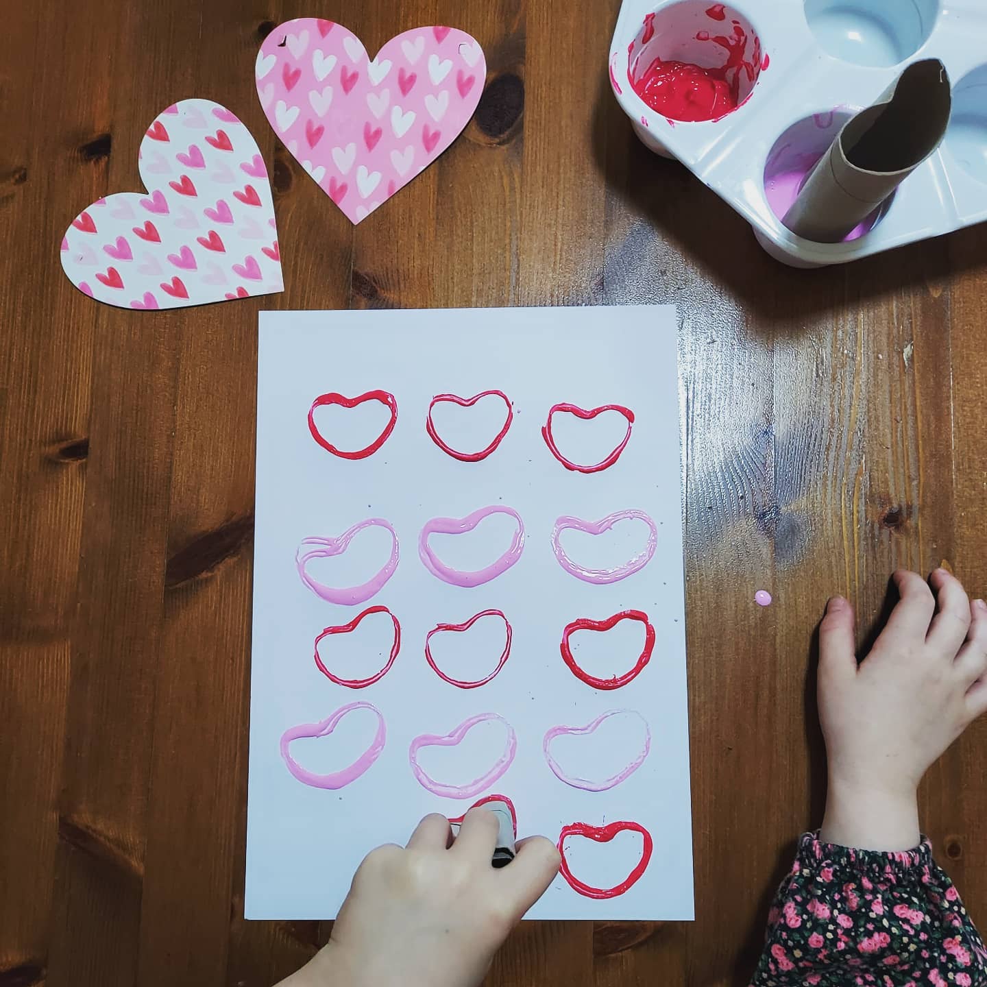 I wouldn’t usually bother going all out for Valentine’s day, myself and Hubby were just going to order a takeaway from our local pub and that be it but now Polly is of an age that she understands things like this its nice to involve her and I got so many ideas from Instagram we celebrated all weekend. I had brought Polly some loved themed books which she just loves so updated one of her book shelves in their bedroom. I got the girls matching PJ’s which Polly at least will wear for the next year anyway, Lola until they don’t fit anymore. I made naughty treat snack board for us to watch a movie snacking on. I did Polly a little Valentine’s treat basket which included a bath bomb some chocs, a new heart shaped drinks cup, love heart sweets, nail polish, hand gel and a few other little bits and then I did Lola a little sensory basket too. Polly also did some treat bags for her little friends to spread the love too! We also did some Valentine’s themed crafts as it’s nice to break the weekends up with something different as the days seems to merge at the moment with all the school work etc.