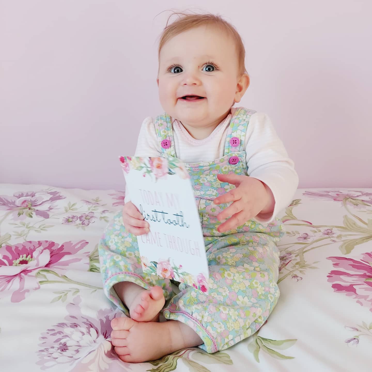Lola got her first tooth finally cut through on the Sunday 28th February. She had been abit ratty this weekend so I just looked and checked and there it was. To be honest I don’t think teething has bothered her too much in general as I know Polly got her first one at 9 months old so I guess being abit older helps but I feel they may all come through at once now.