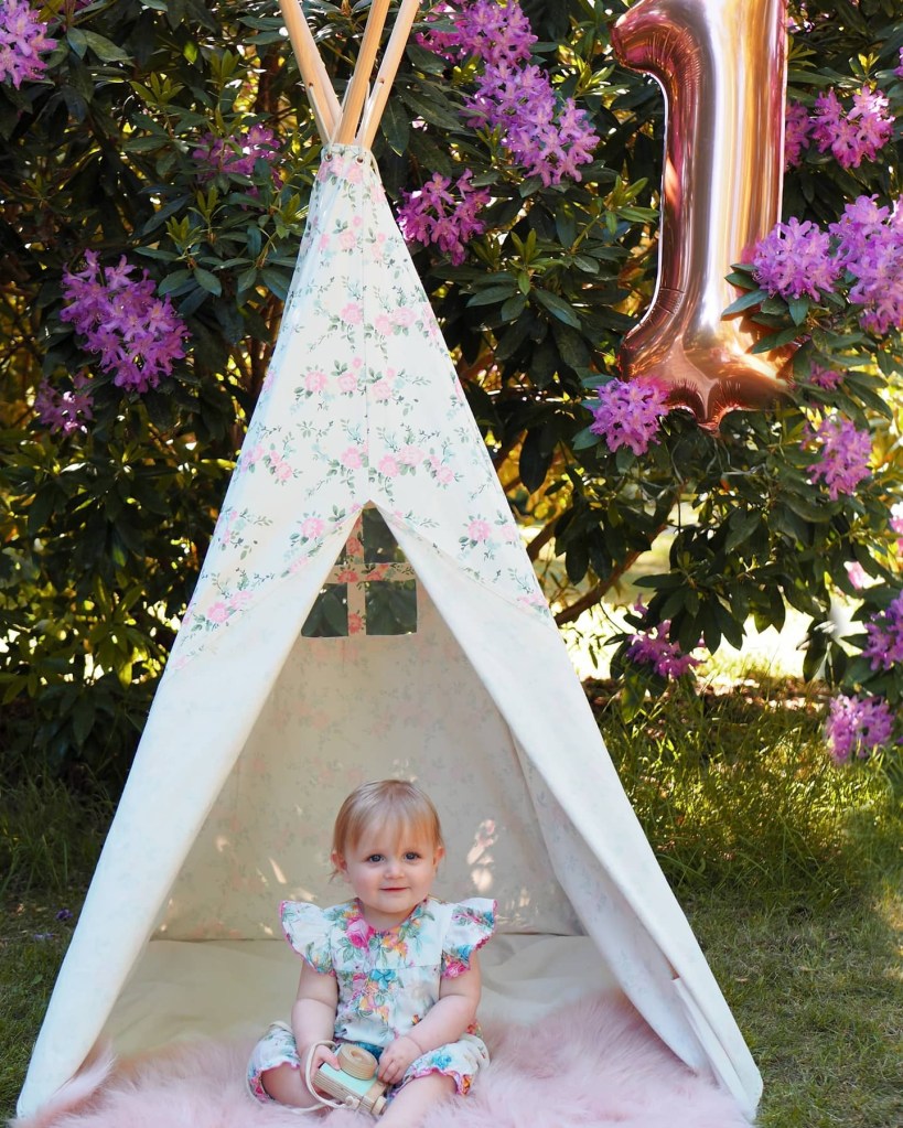 And just like that we have a 1 year old! That tiny 6lb 1oz bubba has turned into a loving, happy little baby who walks everywhere, chats away and has become the sweetest loving little soul. Because she was born during the pandemic I knew I wanted to give her a little party to celebrate her special day. Originally we had booked a little room at a local village hall but due to restrictions not lifting until the 19th July it wasn’t to be. I had also booked SoftPlay2U a local soft play company from Norfolk so we decided to have a garden party instead and have them come here as you are currently aloud upto 30 people in your garden at least. Aswell as the soft play, as it was now going to be at home we hired a bouncy castle from them too for the older ones which went down a treat. So here are some pictures and details of her party the day after her birthday on the 10th July 2021.