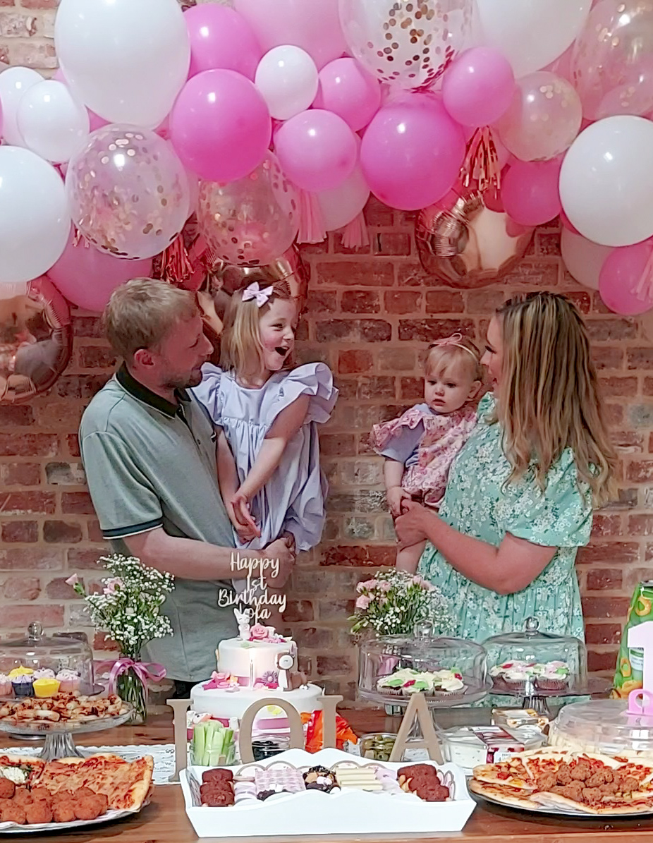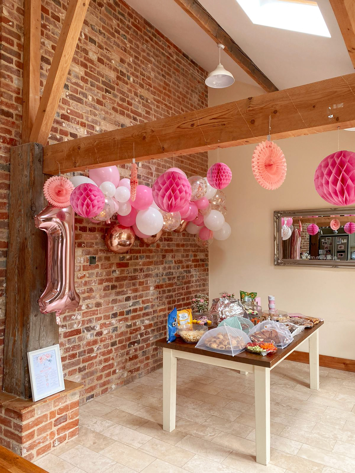 I couldn’t resist a little milestone board as I did one for Polly’s first birthday and it’s lovely to look back on when their older. Of course the theme was pink and girlie and I had to have a balloon arch. My dear friend Lou basically is the balloon arch queen so she took charge of that and as I sit here typing this (2 weeks later) it’s still up and will be until it pops or we use it for Polly’s hehe. Food wise I just went for party food. I knew there would be alot of little ones eating and they just want to be able to pick and play, pick and play etc.