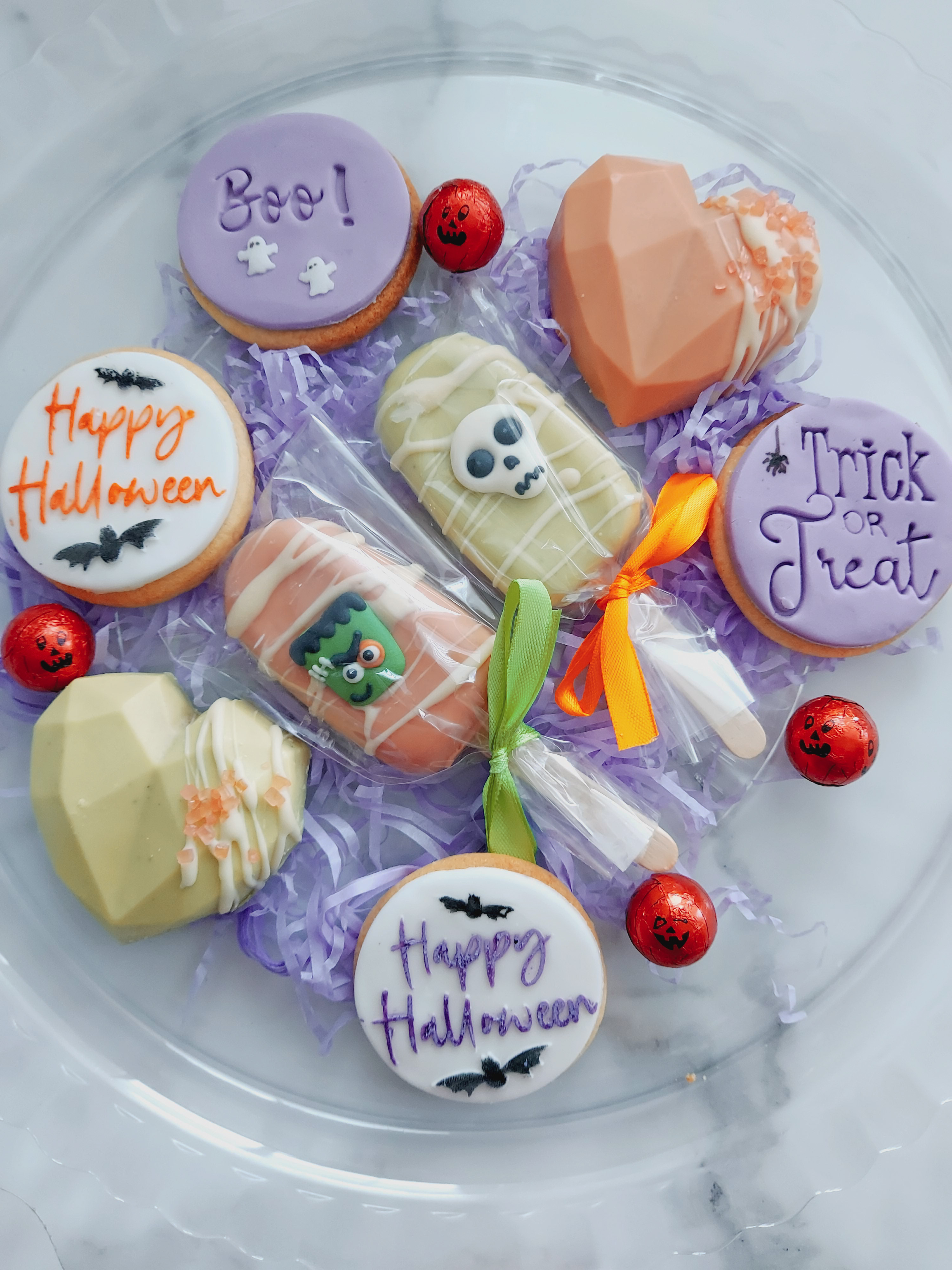 I have also made the girl’s Halloween “Boo Boxes”, something I don’t think I did as such last year. I might have got Polly a few things but Lola would have only been 3 months old. But this year I started getting bits early when I saw them in the shops. Mainly Polly’s items are things to keep her entertained over the half term so I will give them to the girl’s at the start of the holiday. Polly has sticker books, activity books, cookie making set, hot chocolate surprise, a bath bomb, cookie and some sweets. Lola has some books, a little pumpkin vest, a cookie, flashing toy and a soft cuddly toy. I know it seems like Polly has wayyyy more but she is older and I’m sure Lola wont remember bless her. You may even recognise these wooden crates because they are actually their Christmas Eve boxes. The lovely Michelle from Mojo Invites made me these super cool stickers for the back of these boxes so they are perfect and the best thing is I can reuse them every year.