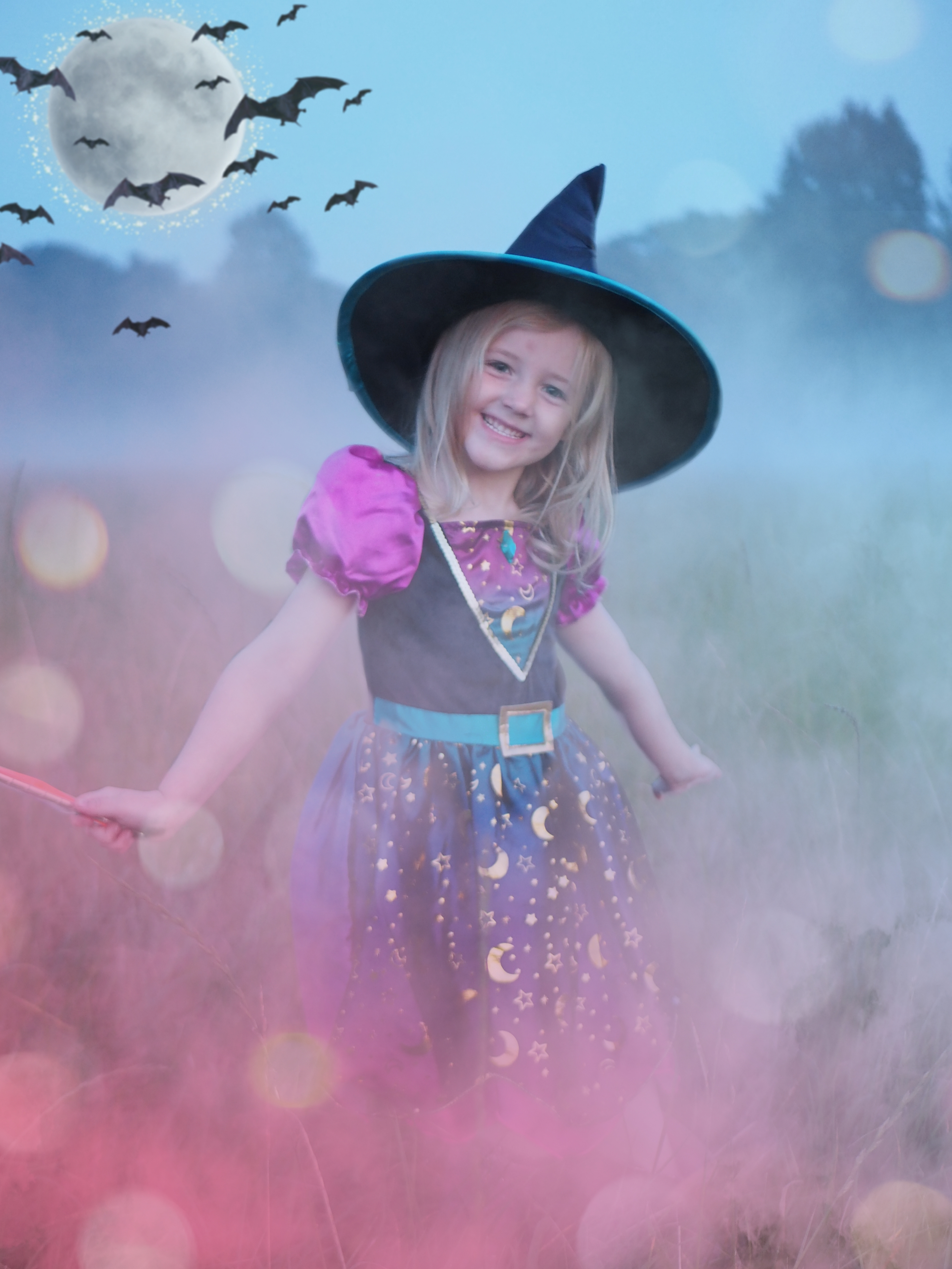 As the month went on we soon got into the Halloween spirit. I took this picture of Polly one foggy evening in the field right near our house and which a quick edit made it even more misty and spooky and she loved dressing up and getting into character bless her such a little actress.