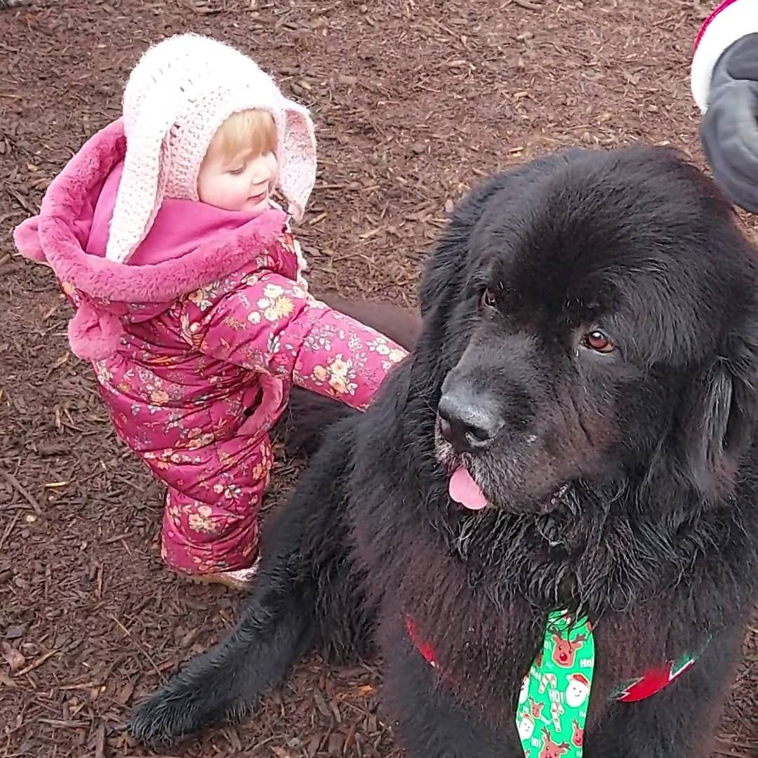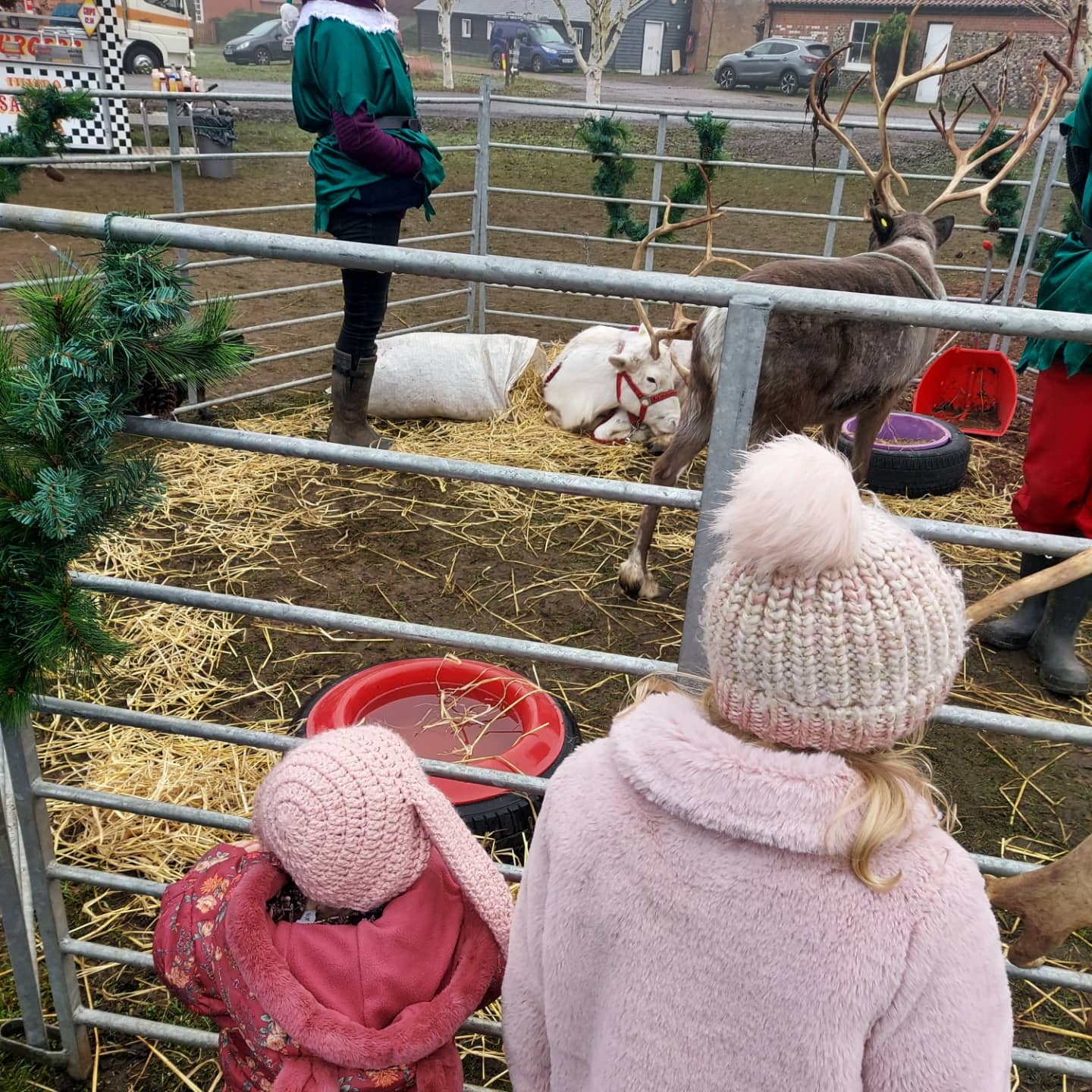 We woke up on the first weekend of the holiday and Hubby suggested going someone for a yummy brunch. So we went to Elveden which is quite local to us and had a delish breakfast and a wander of their grounds. They had some reindeer there which Lola loved looking at. They also had at least 20 new found land dogs which would pull your Christmas tree back to your car for you. They were soooo cute, such a lovely breed of dog. We also ended up seeing Father Christmas there. We hadn’t planned to but they managed to get us in and Polly got a book from him and some chocs. He really did look the real deal and a friend of mine who we bumped into there said that Santa has been there every year for the last 4 years which I think is fab, just a shame there was a screen up but he did let Polly have a quick picture with him. Lola was not a fan at all! Maybe next year hehe.