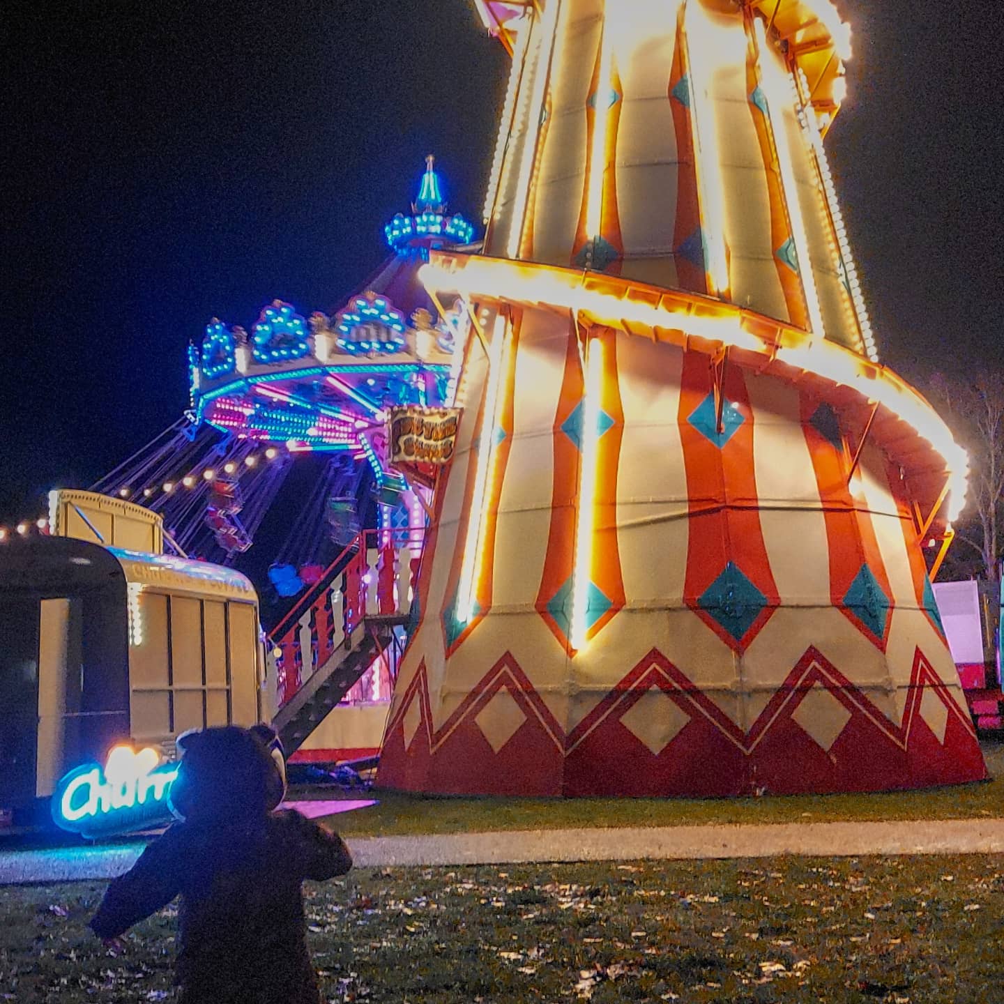 I took more videos than pictures as I seem to do these days and these pictures don’t do it justice how pretty it was. You walk into their woodland trail and I think it said it can take upto 90mins which it probably did to be honest, we didn’t hurry and we took Lola’s pram as I thought it would be too far at her age to walk it all but we got the pram round ok actually considering it had rained that day all day long. Luckily not in the evening. They had a vintage funfair there and Polly picked to go on the huge wheel which was super high, especially when you stop at the top for them to let people on ekes! And she also wanted to go on the helter skelter this time with Daddy. She was under the height measurements so needed an adult to accompany her on both which of course you have to pay for so hense why we didn’t do it all as gets a money getting game then. But we had prebooked £10’s worth which got us 4 tokens so basically 4 rides. I would definitely recommend it to anyone local and I would go again next year too as know Lola would be abit older to enjoy it then but Polly loved it.