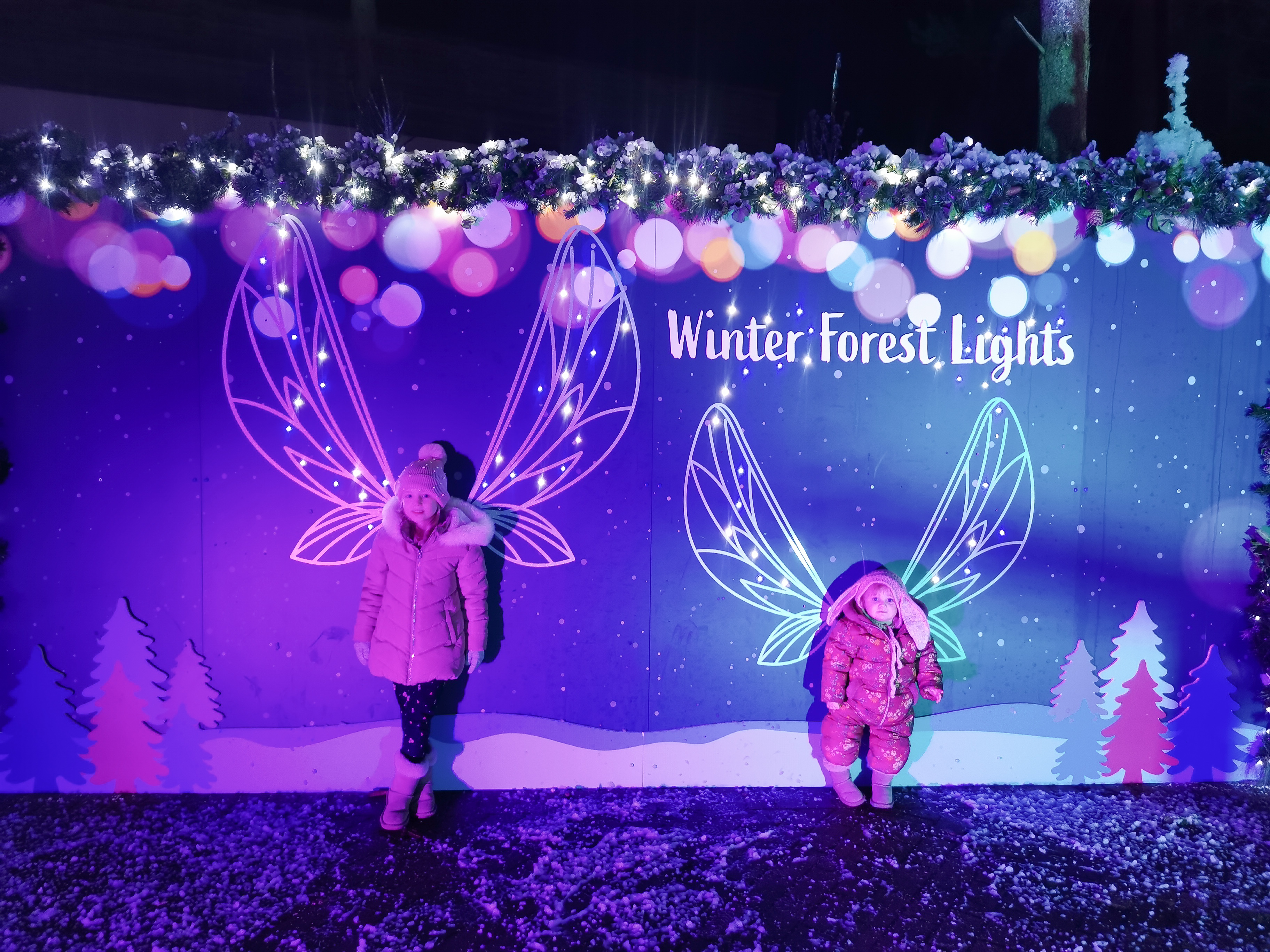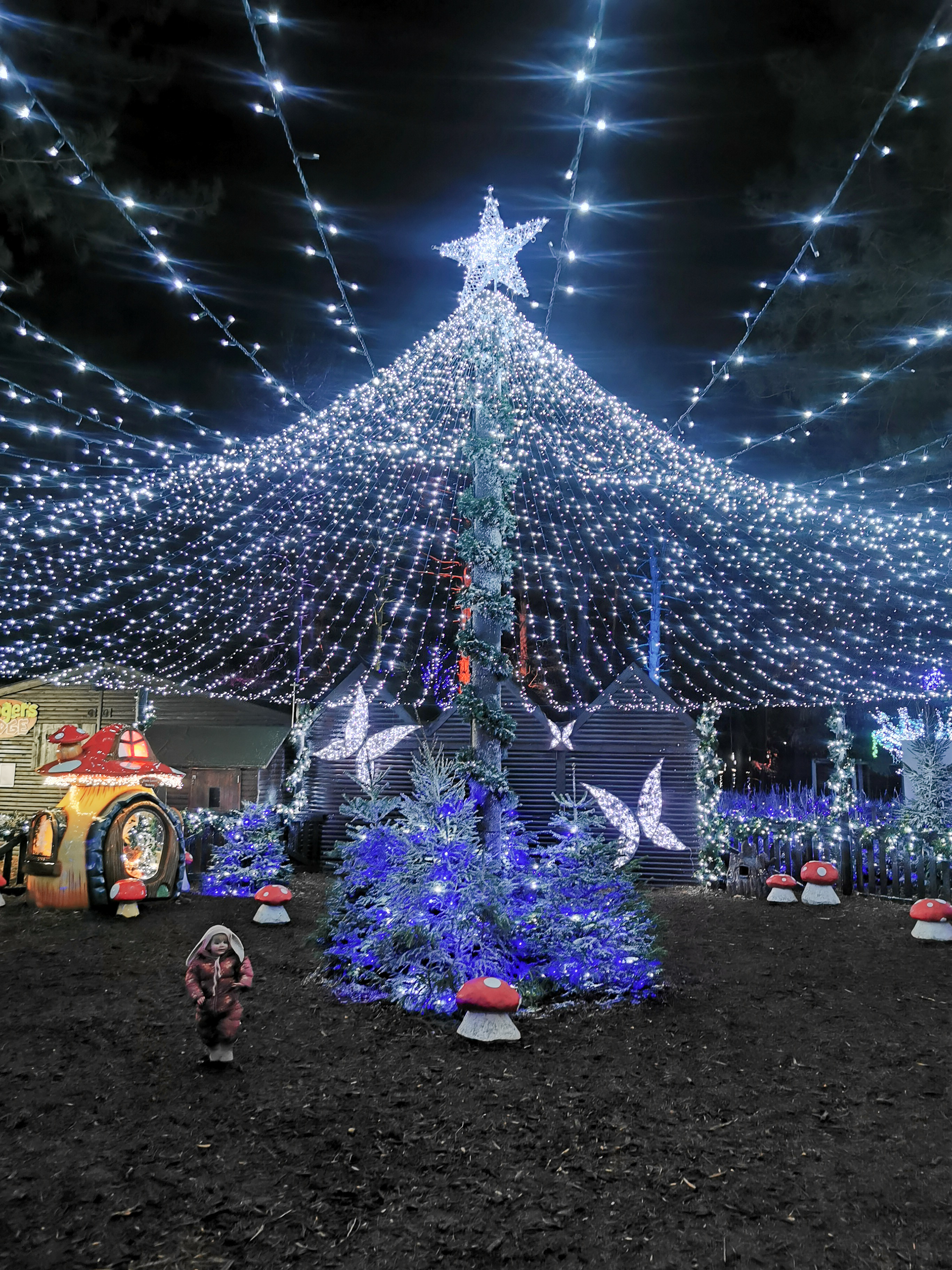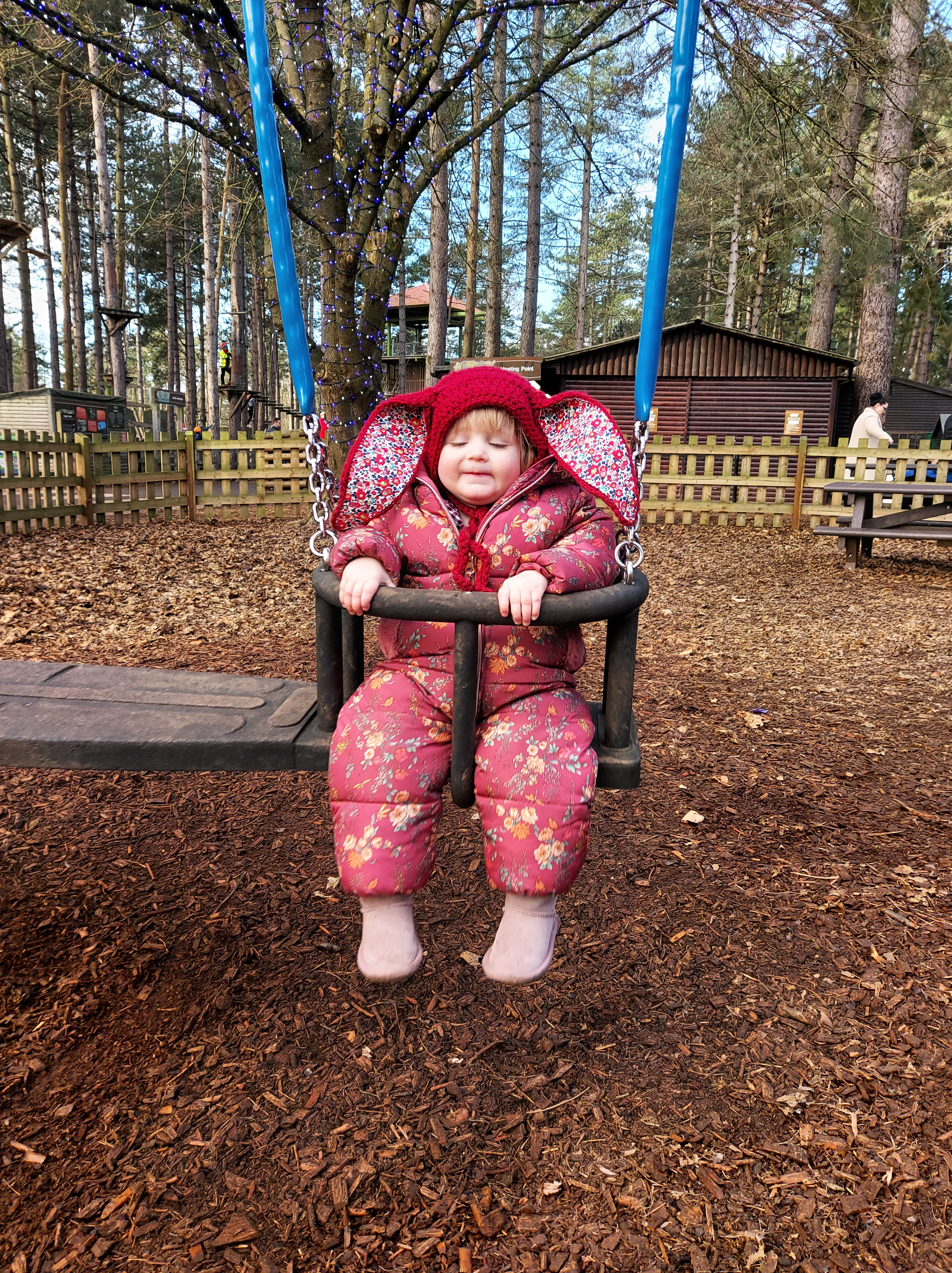 After swimming we had Pottery painting booked and Lola was so shattered from swimming that she slept whilst there which actually couldn’t have been planned better because it meant Polly got some chilled time painting what she wanted to and we even did a new family handprint plate, a little tradition we have each time we go and because Lola was asleep we were able to paint her hand and put it on the plate better than if she was awake. We had fun in there and then headed to dinner which was booked at Hucks. They had a little soft play area and a climbing frame area which kept Polly entertained whilst she waited for her dinner to arrive which was actually super quick. Meanwhile we had to wake Lola as she slept for 2hours and it was then 5pm and I knew bedtime would then be a struggle. She then came too after a nice long nap and enjoyed her dinner especially desert then had some fun playing with Polly in the soft play before we headed off to explore the winter forest lights and the wishing tree. We then biked back to the villa and enjoyed some yummy free prosecco that one of the lovely school mums I’m friends with had us delivered. So lovely and kind.