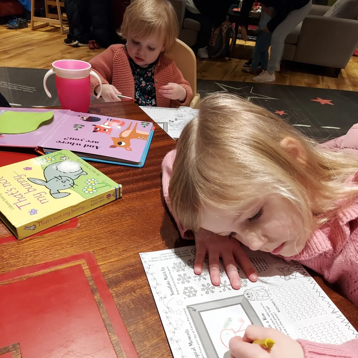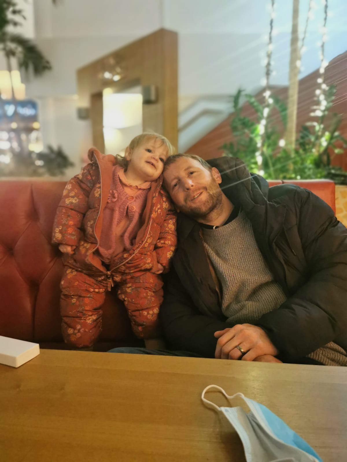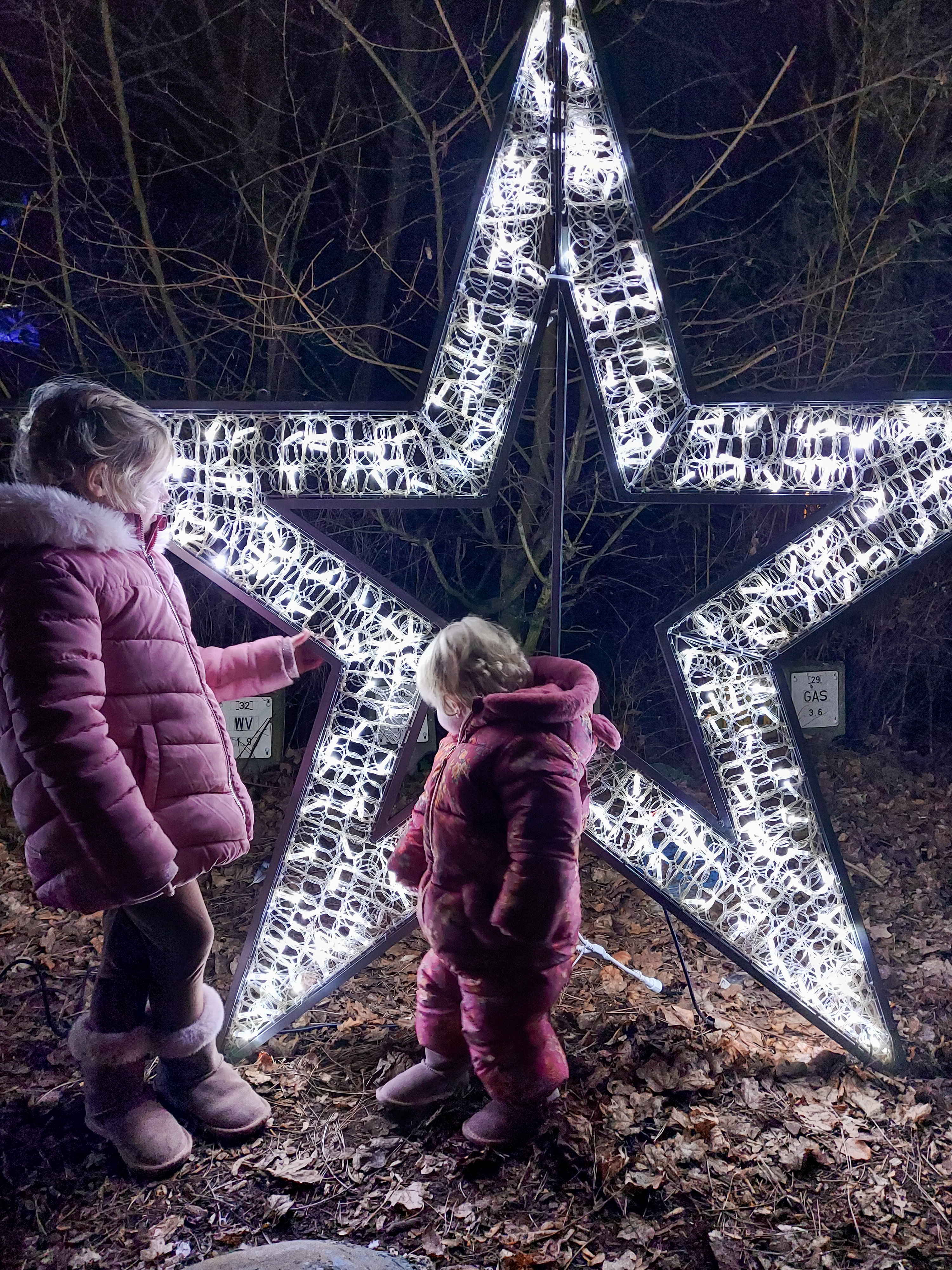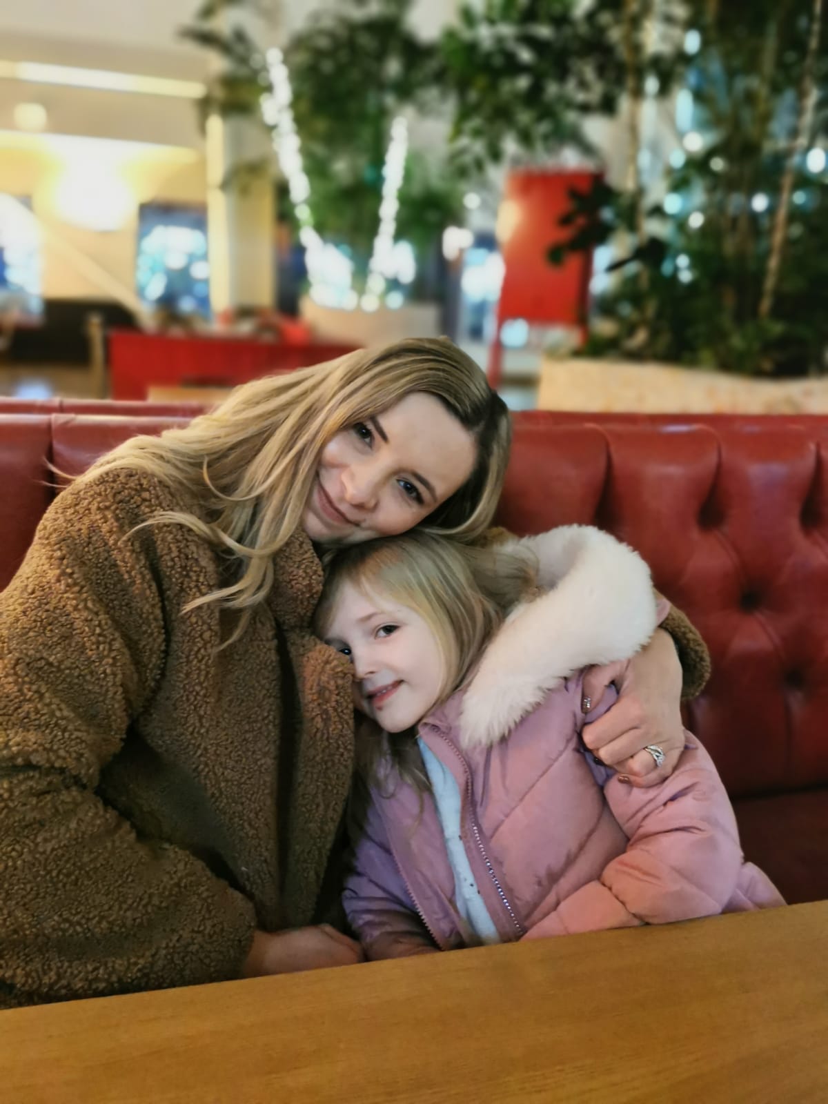 After swimming we had Pottery painting booked and Lola was so shattered from swimming that she slept whilst there which actually couldn’t have been planned better because it meant Polly got some chilled time painting what she wanted to and we even did a new family handprint plate, a little tradition we have each time we go and because Lola was asleep we were able to paint her hand and put it on the plate better than if she was awake. We had fun in there and then headed to dinner which was booked at Hucks. They had a little soft play area and a climbing frame area which kept Polly entertained whilst she waited for her dinner to arrive which was actually super quick. Meanwhile we had to wake Lola as she slept for 2hours and it was then 5pm and I knew bedtime would then be a struggle. She then came too after a nice long nap and enjoyed her dinner especially desert then had some fun playing with Polly in the soft play before we headed off to explore the winter forest lights and the wishing tree. We then biked back to the villa and enjoyed some yummy free prosecco that one of the lovely school mums I’m friends with had us delivered. So lovely and kind.