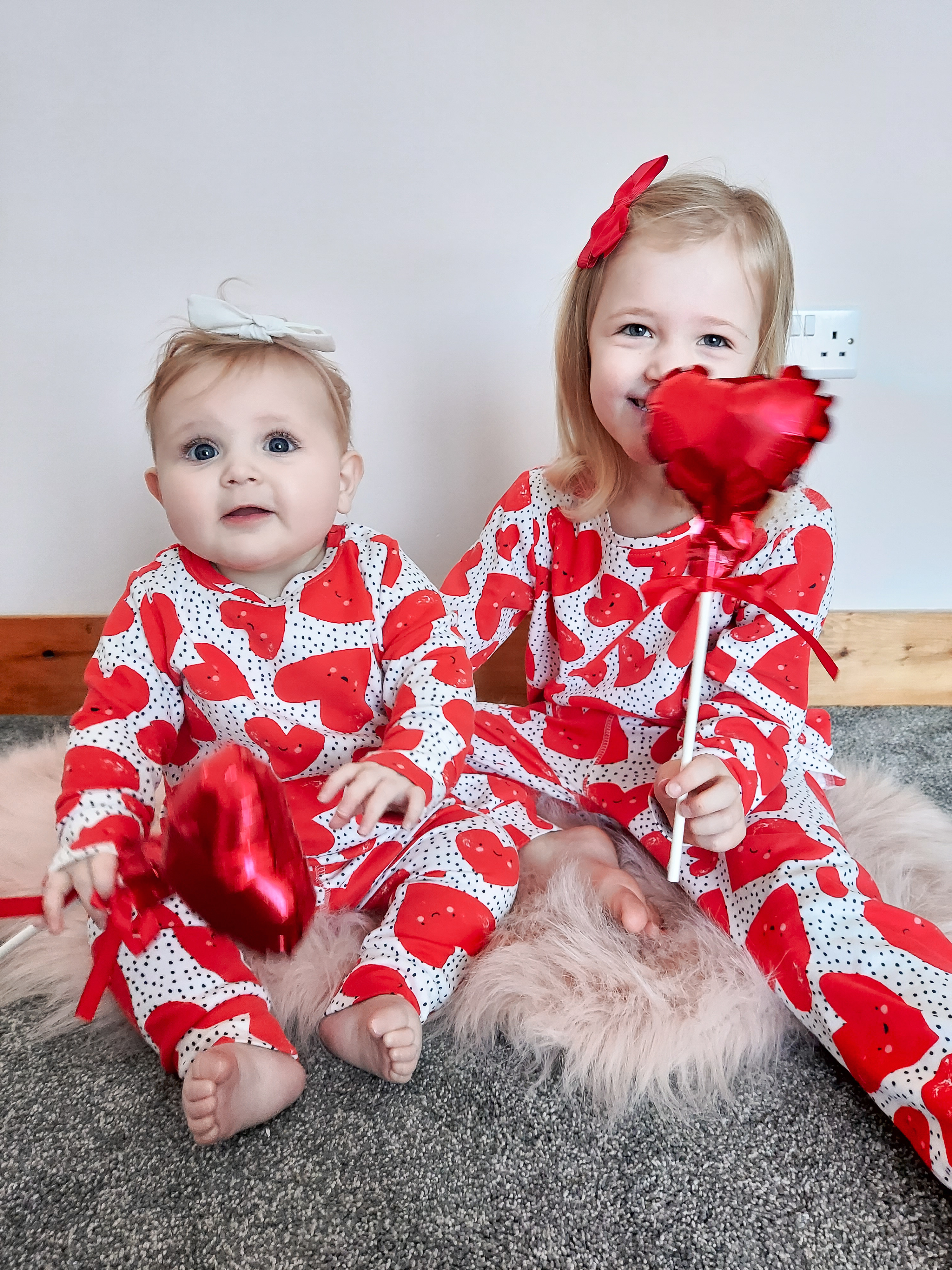 Again for me I’m a sucker for a seasonal PJ, although they are usually worn all year round in this house hehe. But these heart PJ’s were actually from Next last year. I believe Lola’s may have been slightly too big as she was in-between sizes and luckily I managed to squeeze her into 9-12 months for one last time although she is now 19months old bless her! Again Polly has surprisingly grown in a year too so no chance of fitting next year but I do love a comparison picture from the time before etc.