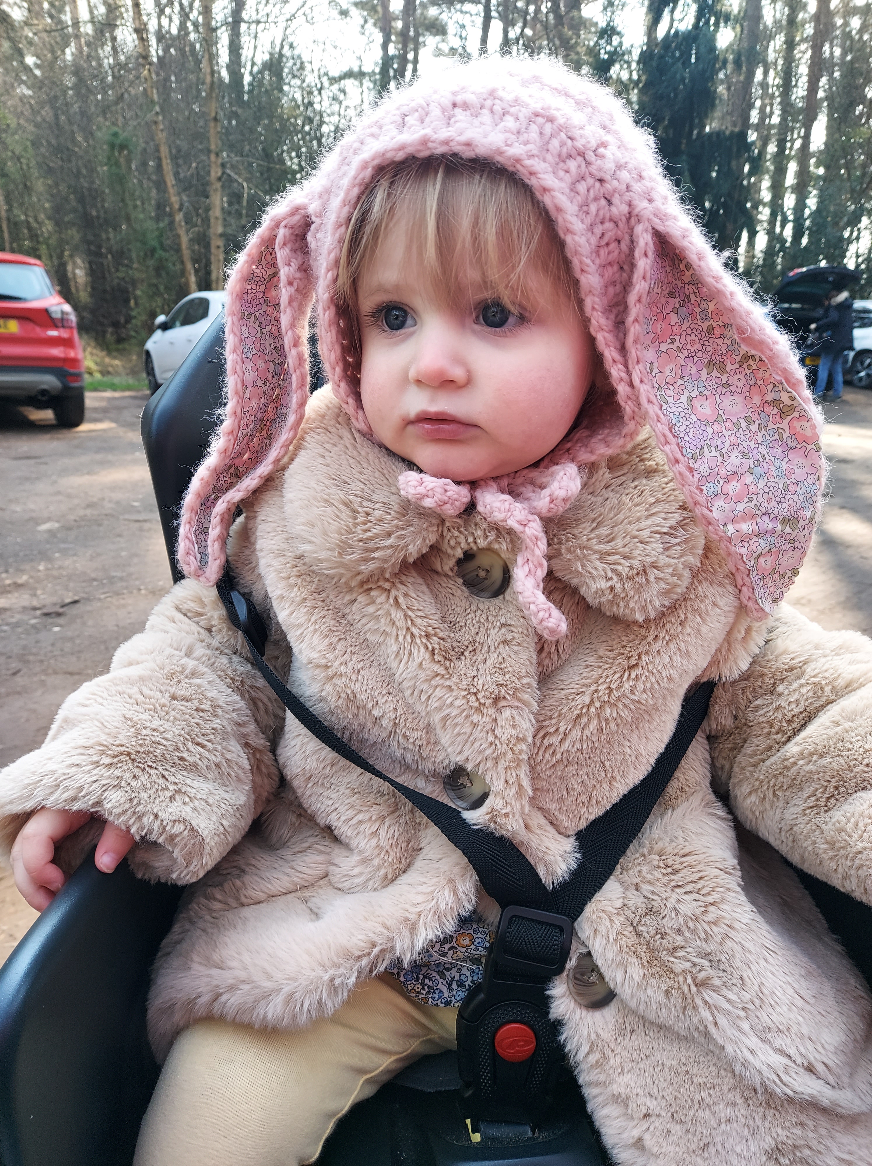 It’s been a rather wet cold month so far, but when we did get a fairly dry day one weekend so we got our bikes out and headed to our local forest for a bike ride. Still wrapped up, Polly even wanted her gloves and any excuse for Lola to wear her Bunny ears hat from Rosebuds and Ribbons. I also can’t believe as of next month I will of had my bike a whole year but it was honestly such a fab birthday present from hubby as we do go on alot of bike rides altogether.