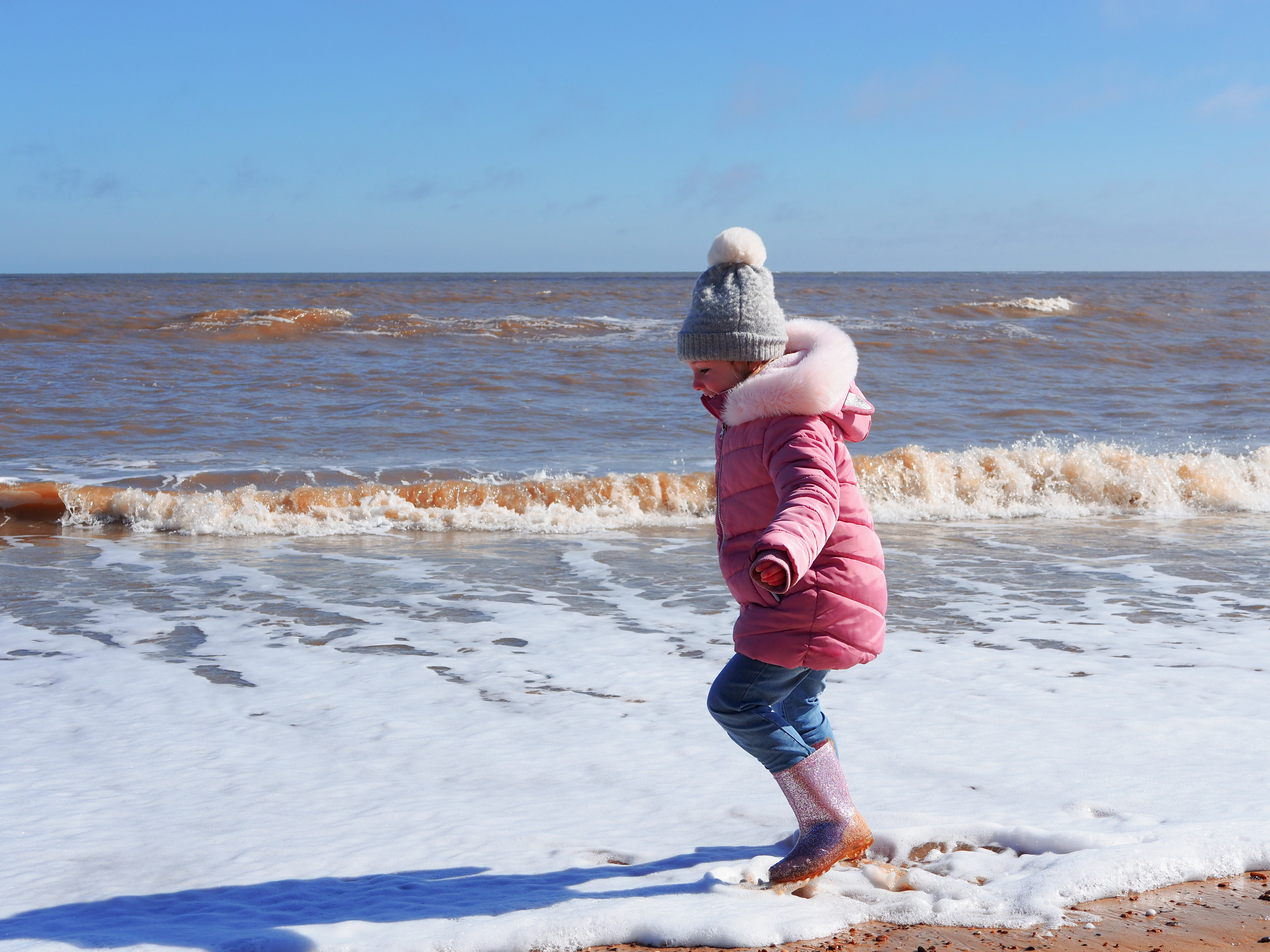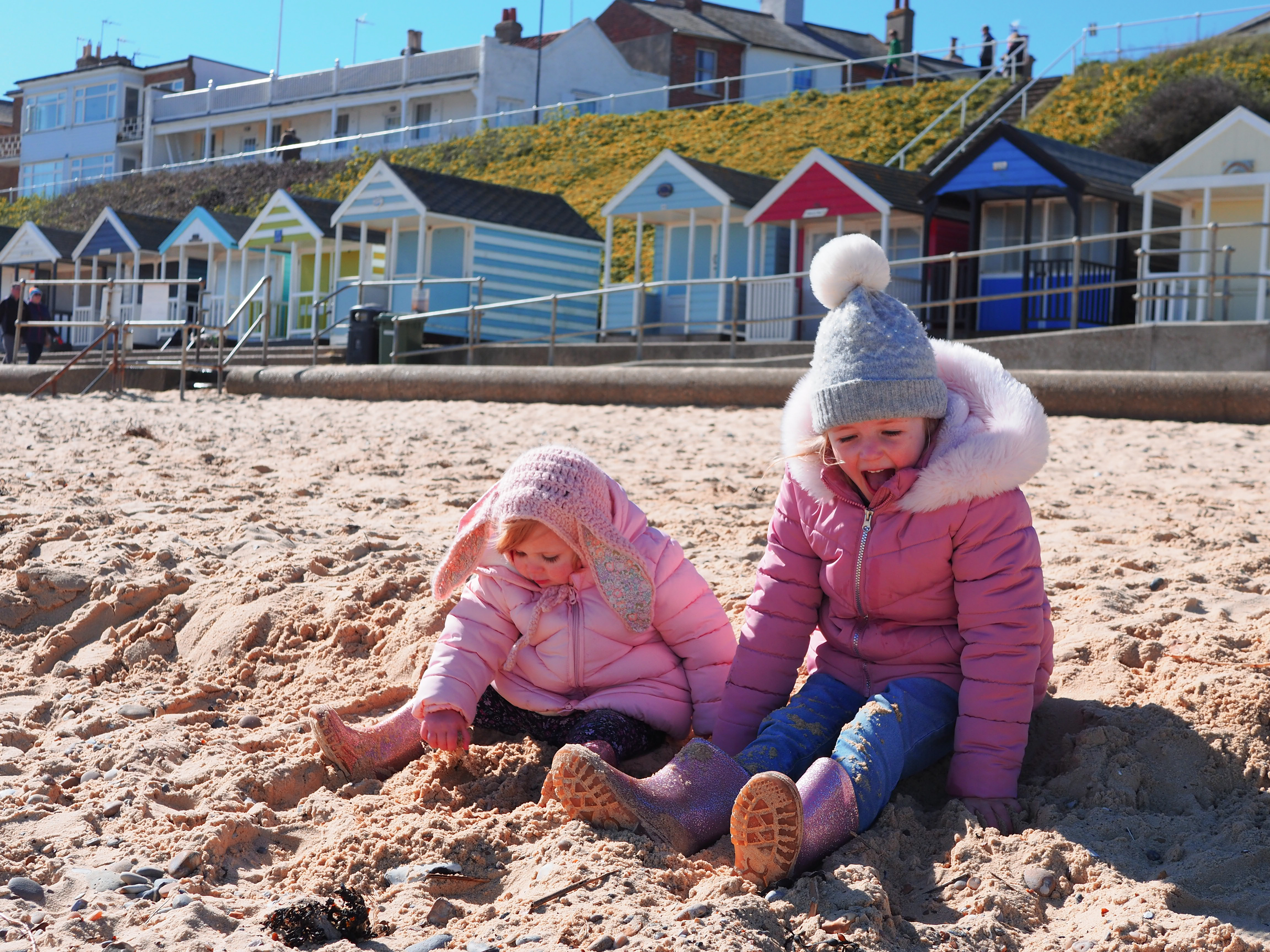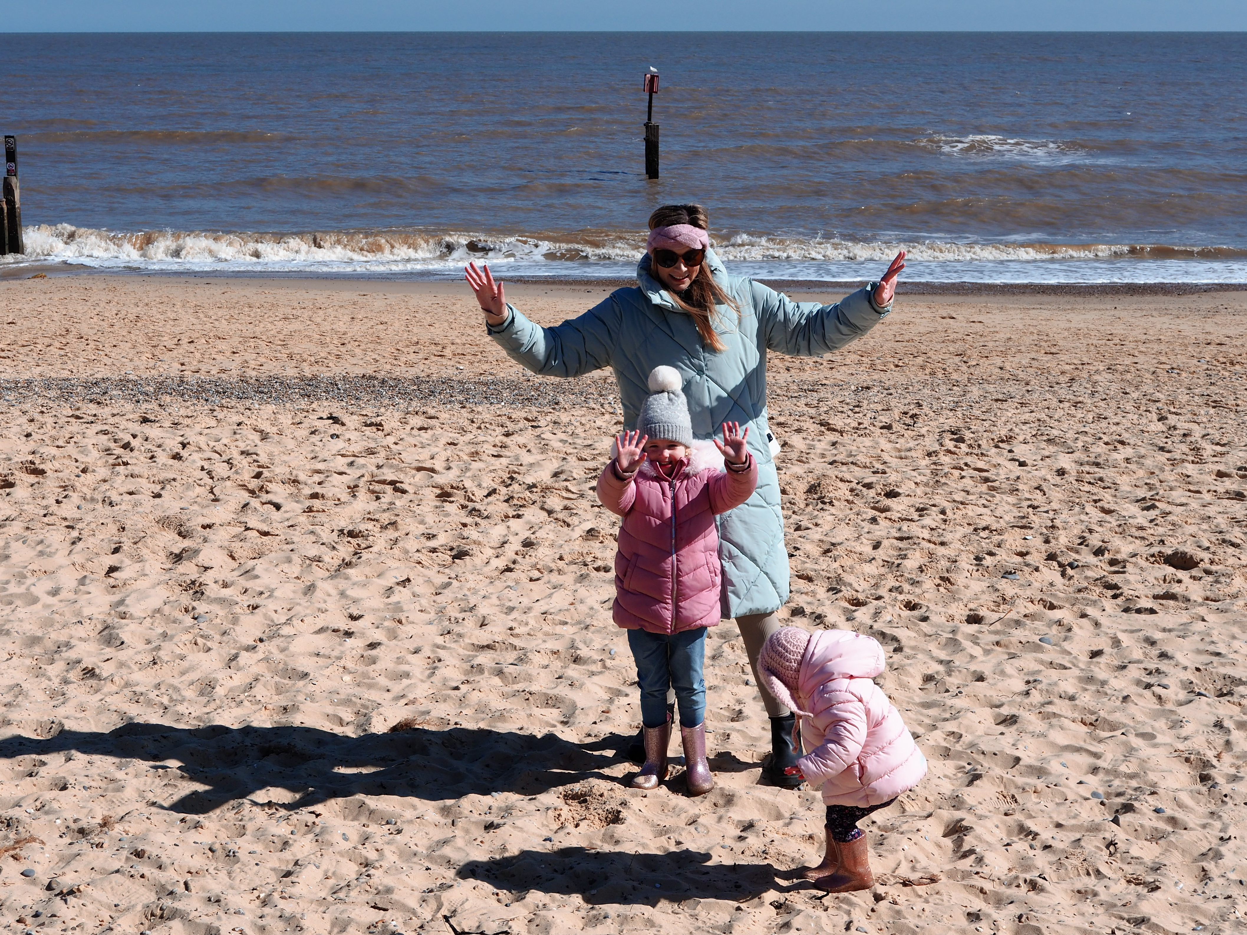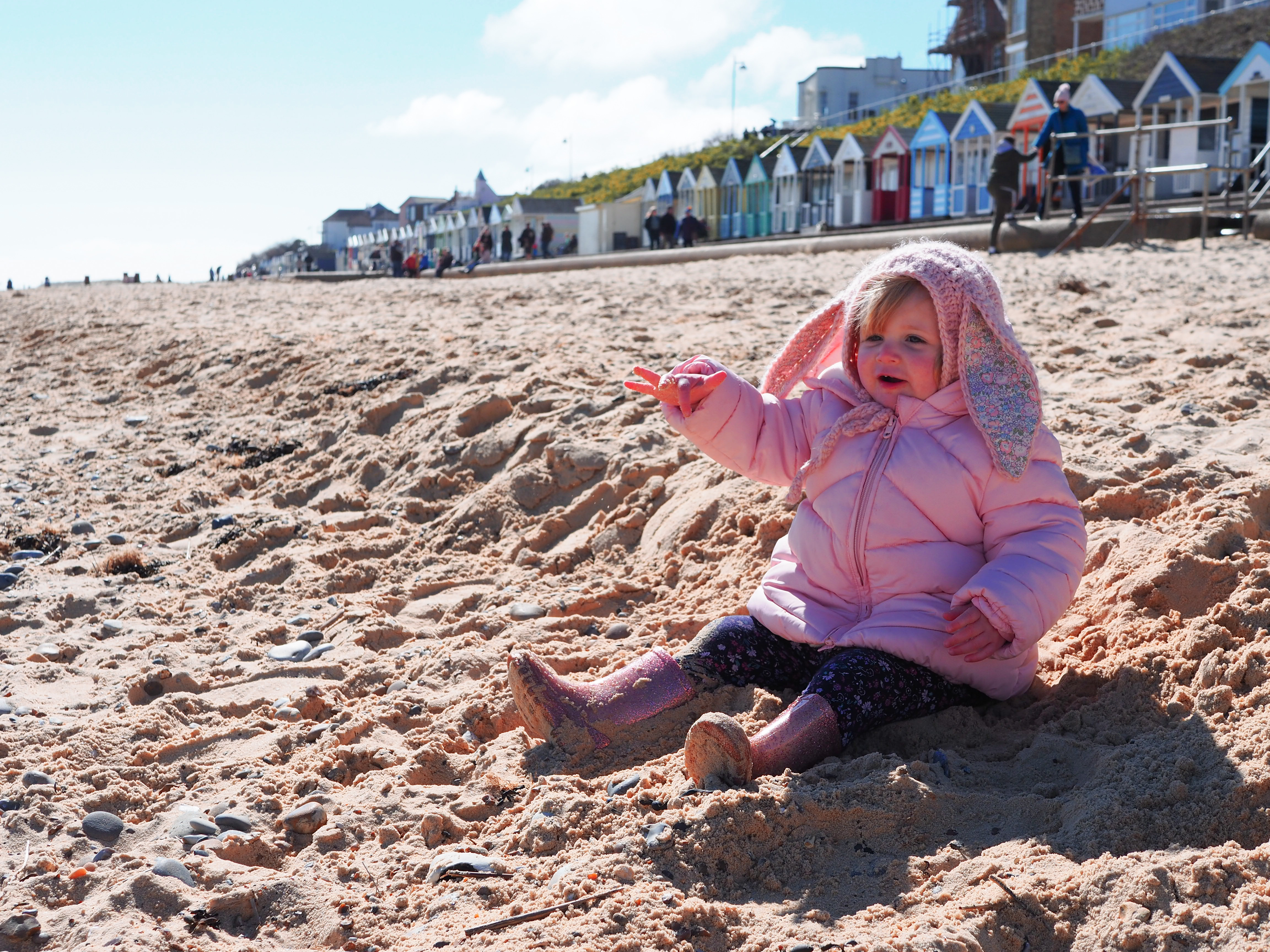 On Mother’s Day itself Polly had a big dance rehearsal for her show which was only for 10mins and just after 10am so once that was done, a quick change for Polly and we headed to our favourite Beach… Southwold. It holds so many lovely memories here for me with my Dad and grandparents and now Mum gets to bring her grandchildren here. Just so lovely. Hubby has been in chronic back pain lately so was unable to endue the travelling that far, not my driving he promised me. But it was a lovely girls day. Super chilly after a lovely sunny warm day yesterday where I even wore sandals and now the hats and gloves were back out. We parked along the seafront, one thing I love about Southwold is parking is always so easy if you arrive early enough, then walked into the town to grab some fish and chips. We ate them on a bench near the seafront and watched the waves come crashing in. We then had some hot chocolates to warm up and Polly had an ice-cream before heading onto the beach. Lola loved playing in the sand and had no fear of the sea. Infact I got one boot rather wet grabbing her out.