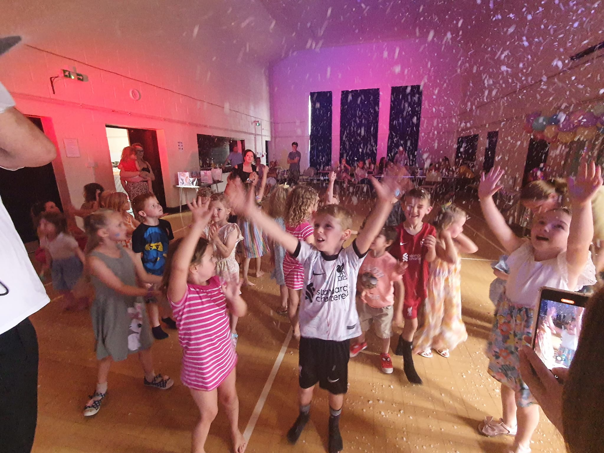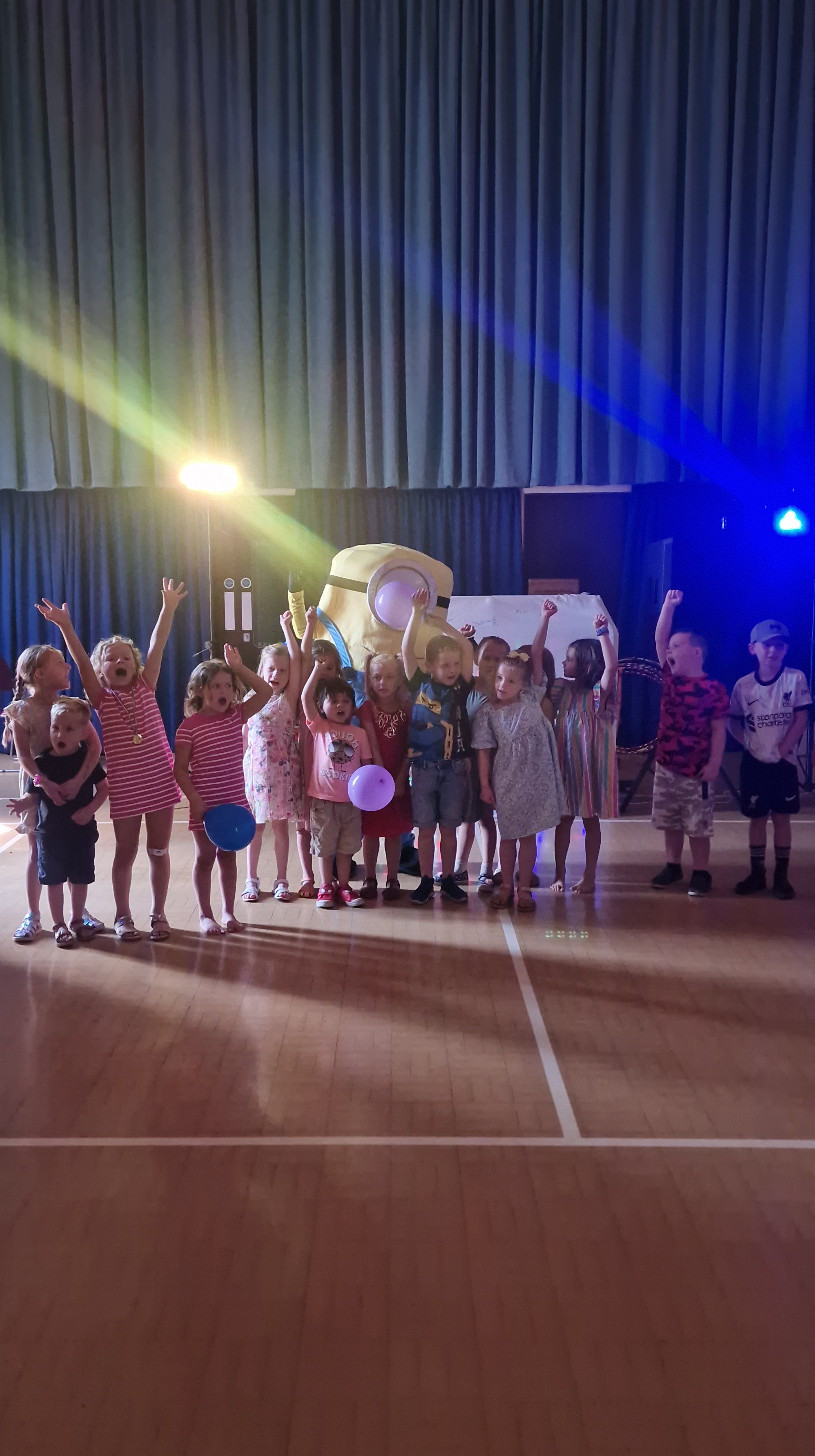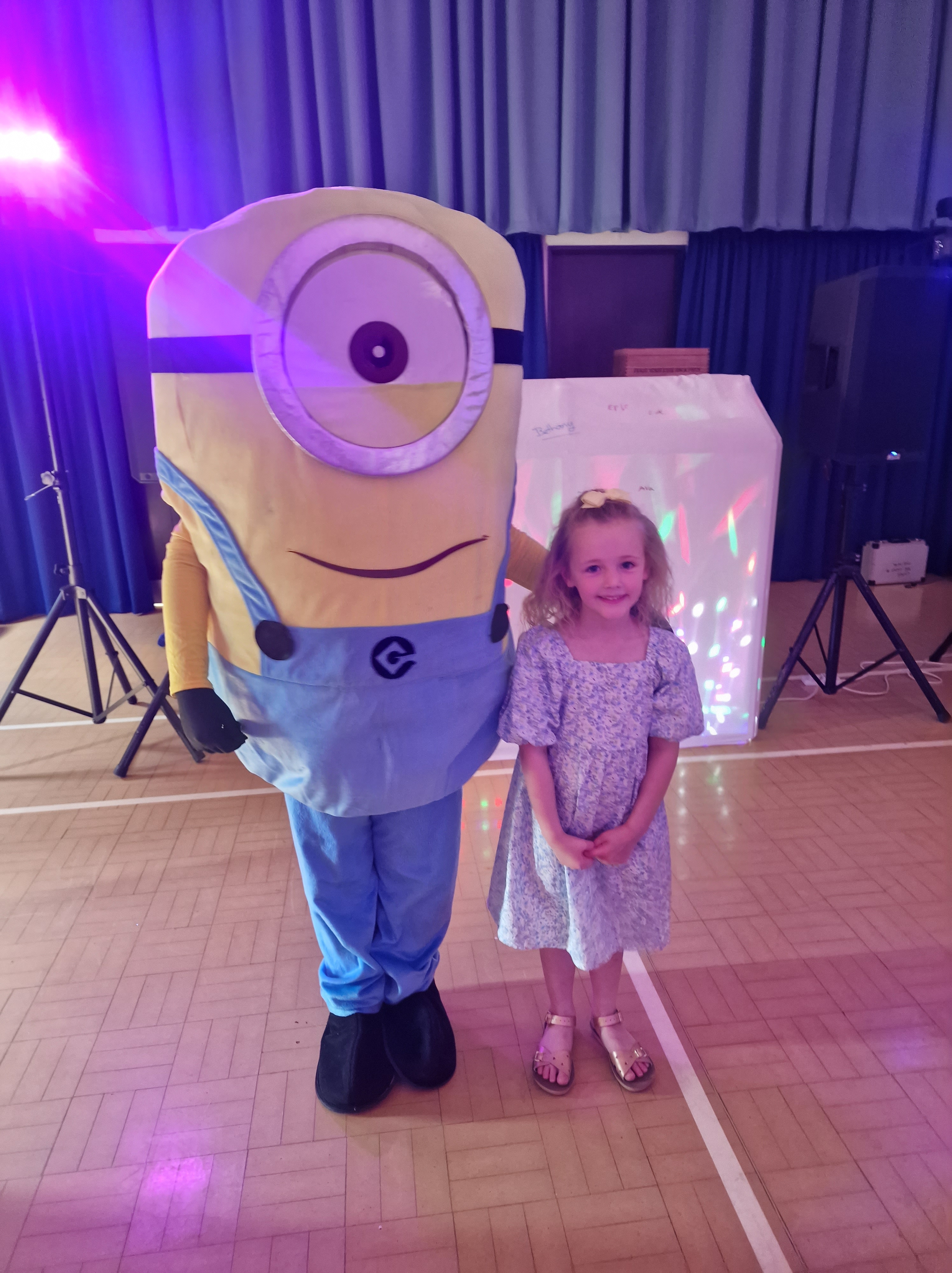 It just all come together really well and by the time I’d put the toppers on the cake its was almost 3pm and people had started to arrive. Polly had invited her whole class and actually most of them came which was lucky because it was a risky weekend to book being the first weekend of the summer holidays and everyone heading away etc but it was a lovely amount to have and some of their siblings will be in Lola’s year so even cuter! They are all honestly such a great bunch of children. The DJ did fab and literally kept them entertained for the whole two hours with the music, dance competitions, a huge rainbow sheet came out which they loved dancing under. Even Dave the Minion turned up and so did a Frog who did the “Hockey Cokey” with the children I mean what more can you want it was just lovely. The foam machine even came out at the end and each child went home with a sword balloon.
