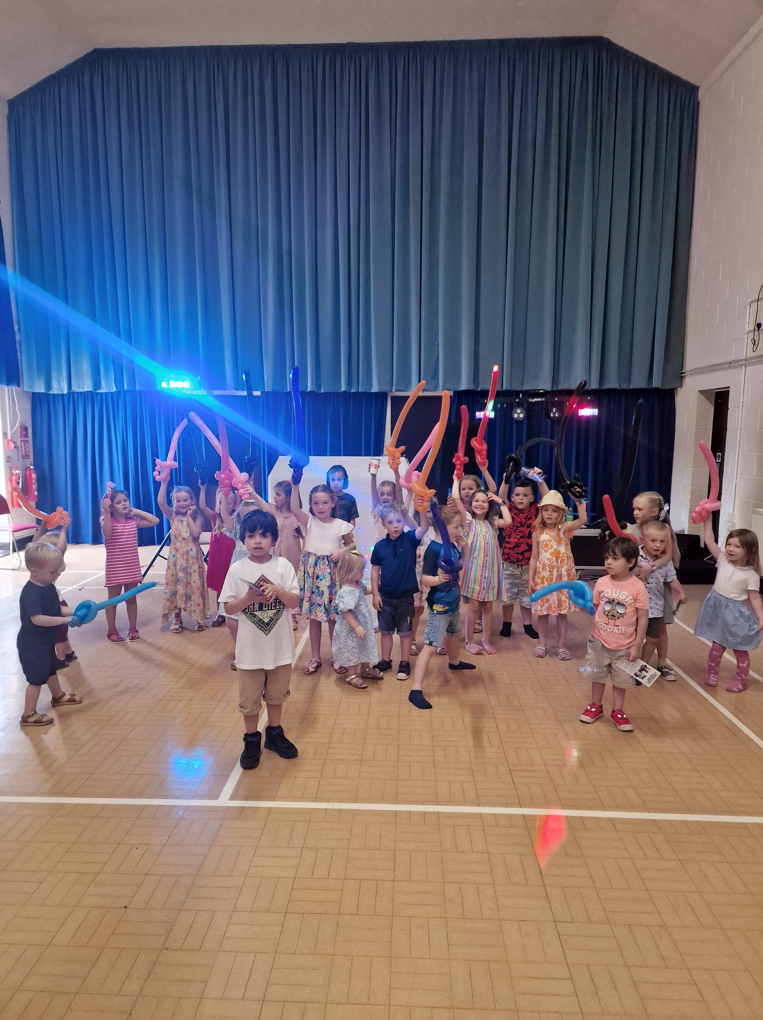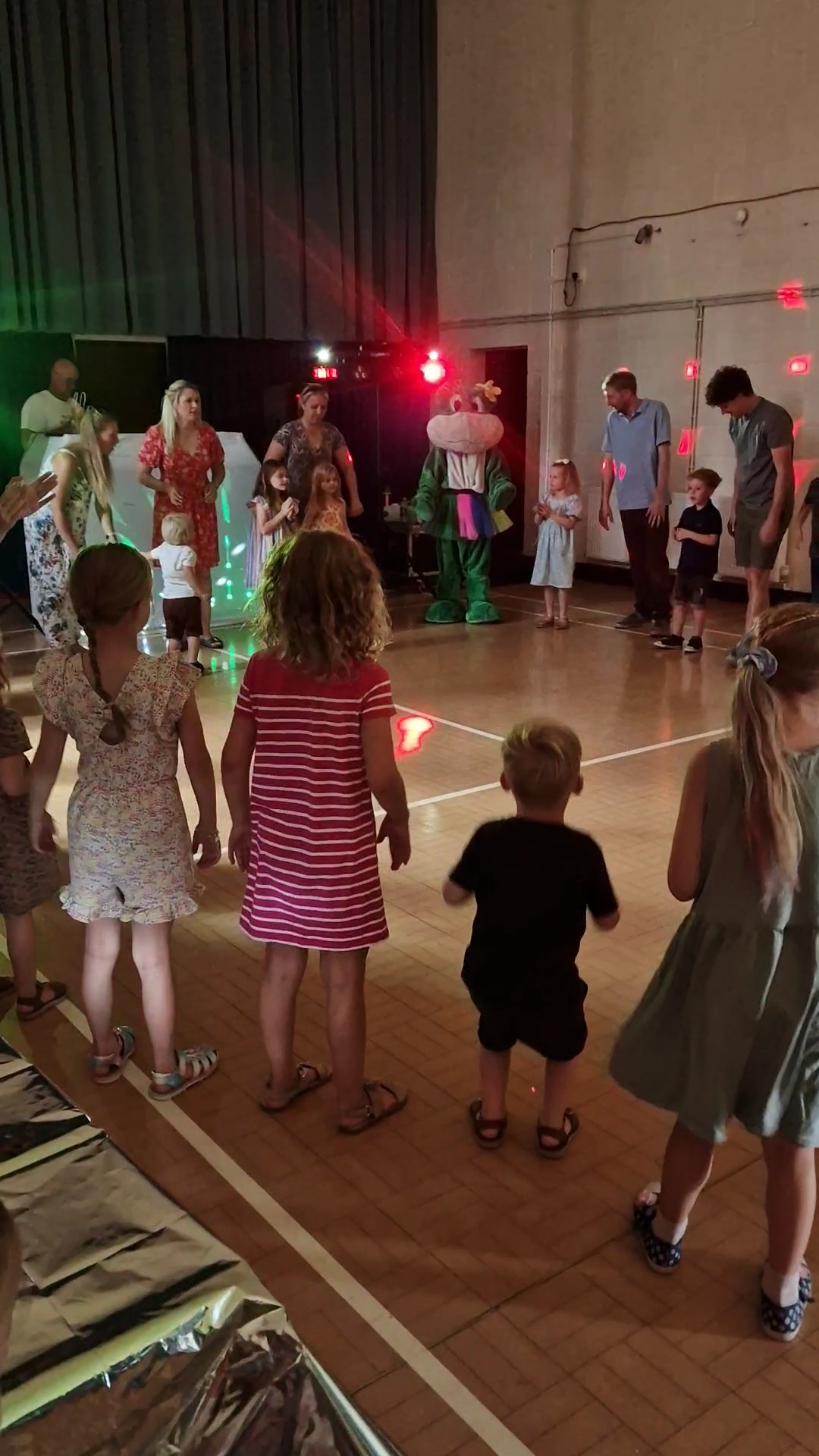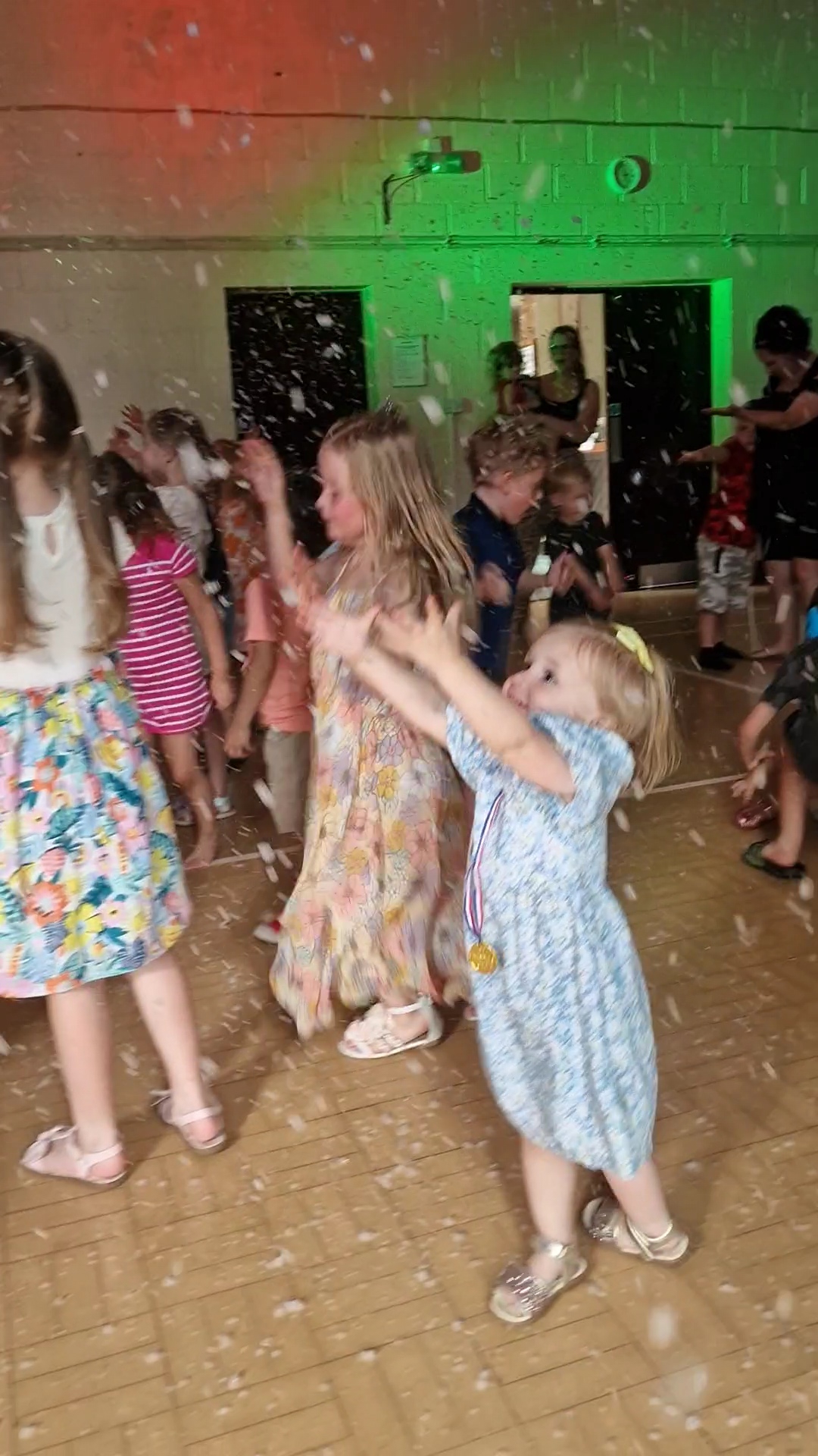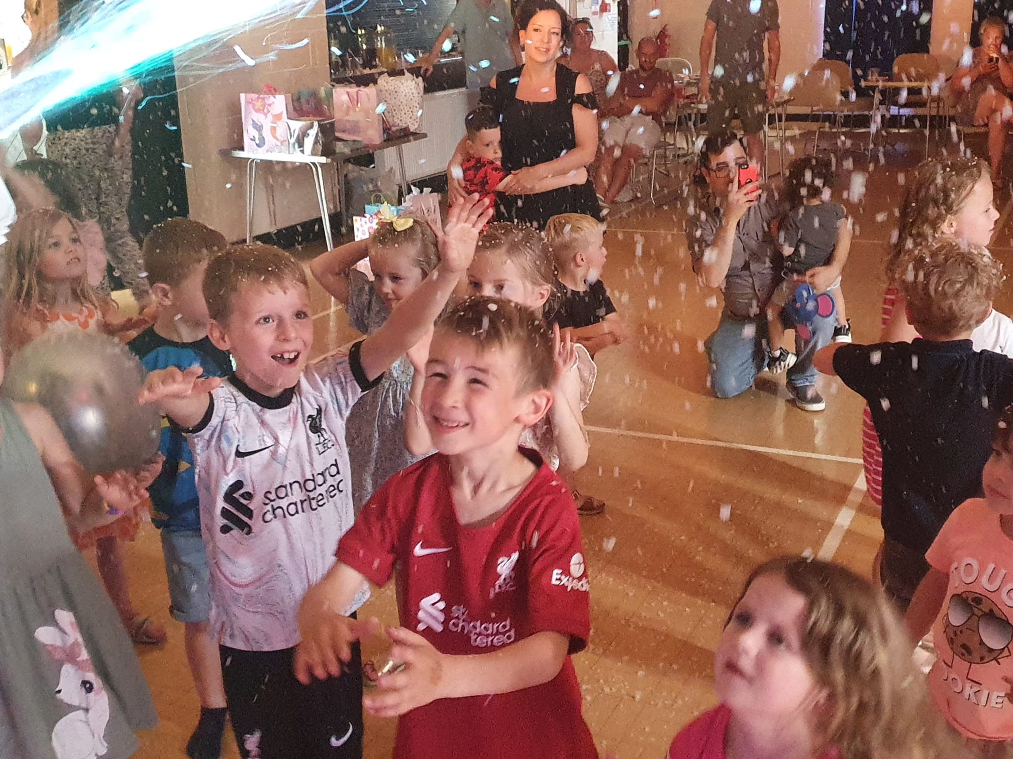 It just all come together really well and by the time I’d put the toppers on the cake its was almost 3pm and people had started to arrive. Polly had invited her whole class and actually most of them came which was lucky because it was a risky weekend to book being the first weekend of the summer holidays and everyone heading away etc but it was a lovely amount to have and some of their siblings will be in Lola’s year so even cuter! They are all honestly such a great bunch of children. The DJ did fab and literally kept them entertained for the whole two hours with the music, dance competitions, a huge rainbow sheet came out which they loved dancing under. Even Dave the Minion turned up and so did a Frog who did the “Hockey Cokey” with the children I mean what more can you want it was just lovely. The foam machine even came out at the end and each child went home with a sword balloon.