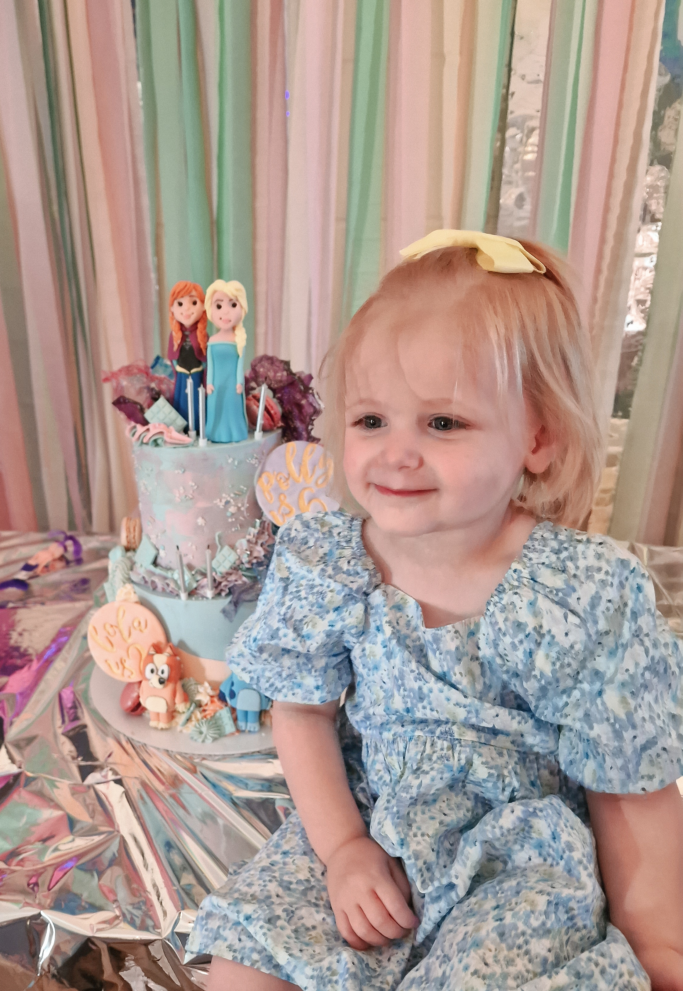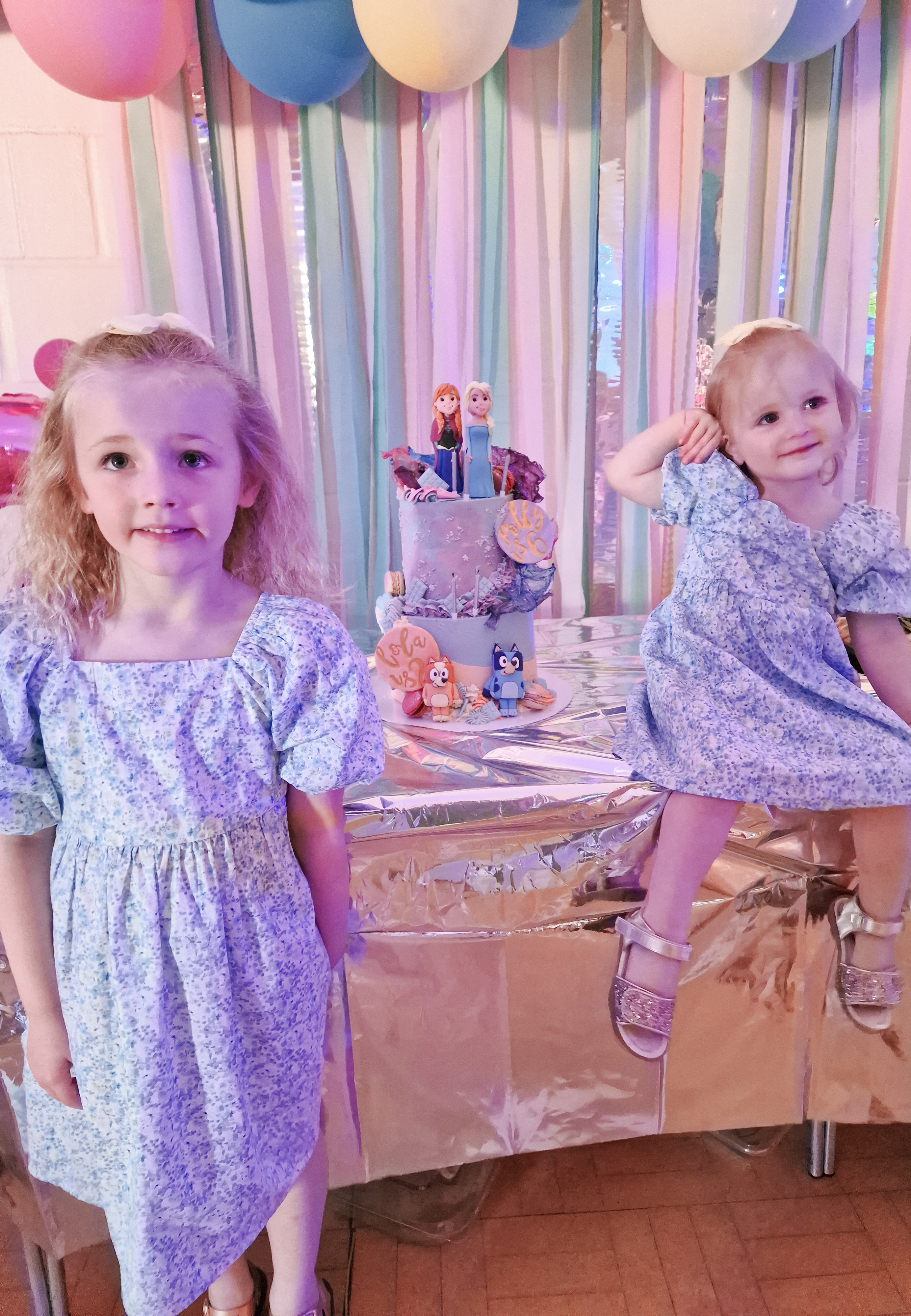 As for the cake I’d collected that on the Friday and my Mum had the job of holding it all the way home safely before it went in the fridge overnight. It was from “Sophie’s Cakes and Bakes” who I found via Instagram and she did a fab job on my Mum’s 70th birthday cake last year. I just thought save me the hassle I’d treat the girls and have one made and I’m so glad I did as literally so blown away with how it turned out. I’d done a terrible rough drawing for her and said the theme was “Frozen” and “Bluey” and she pulled it off Amazing! As for the cake toppers they came from Yorkshire by the very talented Hannah of “HD Cake Toppers”, again who I’d found via Instagram and she did Polly a troll last year and Lola some woodland animals. I mean Polly ate her troll but I kept Lola’s as just too good to eat.