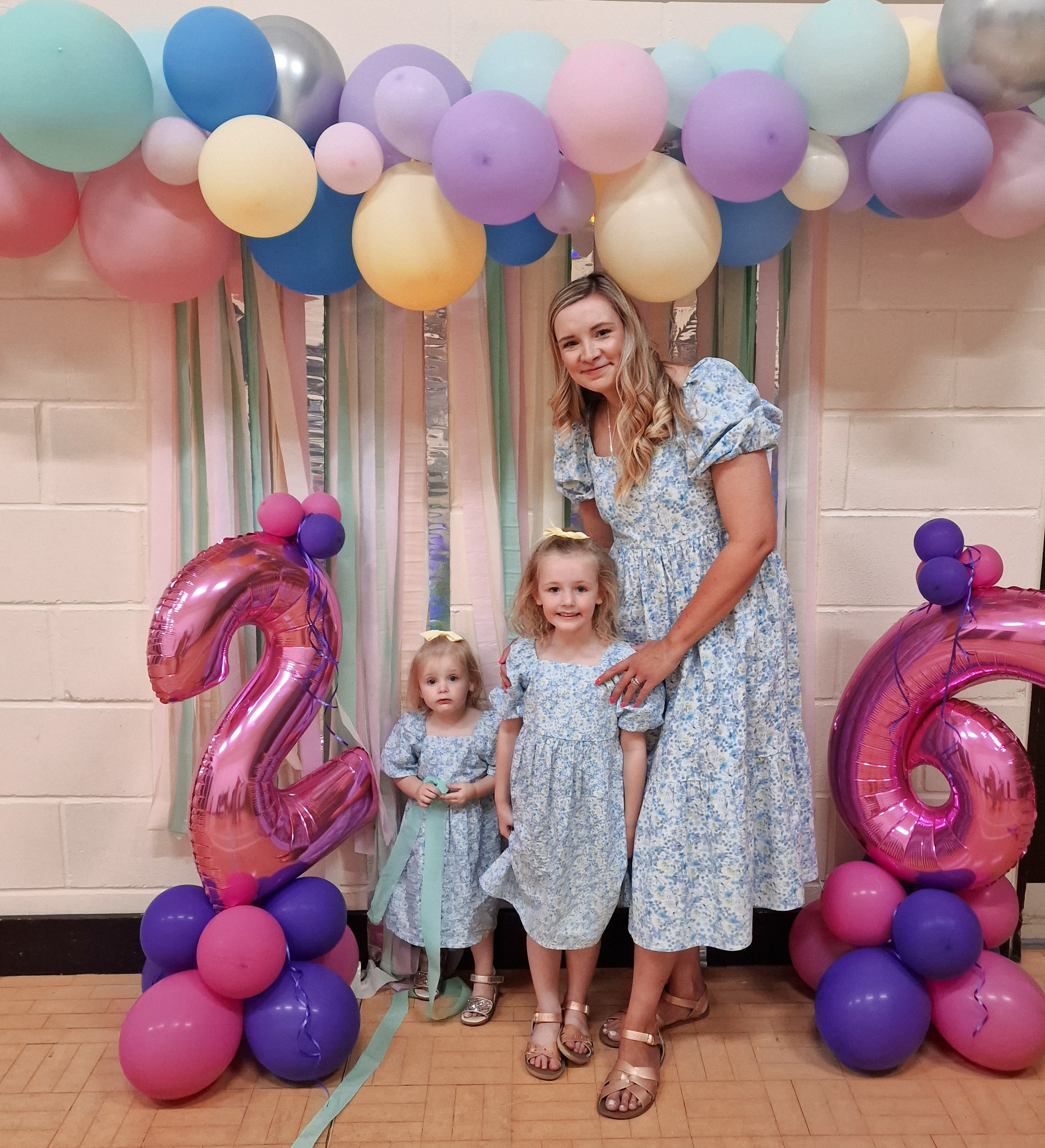 Wow what a day yesterday was! So originally I had planned to throw Polly a disco party for her 6th birthday at our local village hall where she could invite her whole class. She attended her friends back in May and the DJ was fab and literally entertained the children for two whole hours and all the children including Polly (who always loves a boogie) loved it! This was my intention but when I went to book it for her birthday weekend in August it was already fully booked and I’m usually an organised person but someone had already beat me to it so this then left July, as better early than late and she already has alot of party’s and we have a wedding in July aswell as Lola’s birthday so I thought lets do a joint one for the girls. I let Polly invite her whole class and then for Lola aswell as inviting friends and family I invited some siblings in Polly’s class who will be in Lola’s class. Always cute to look back on over the years a they grow.